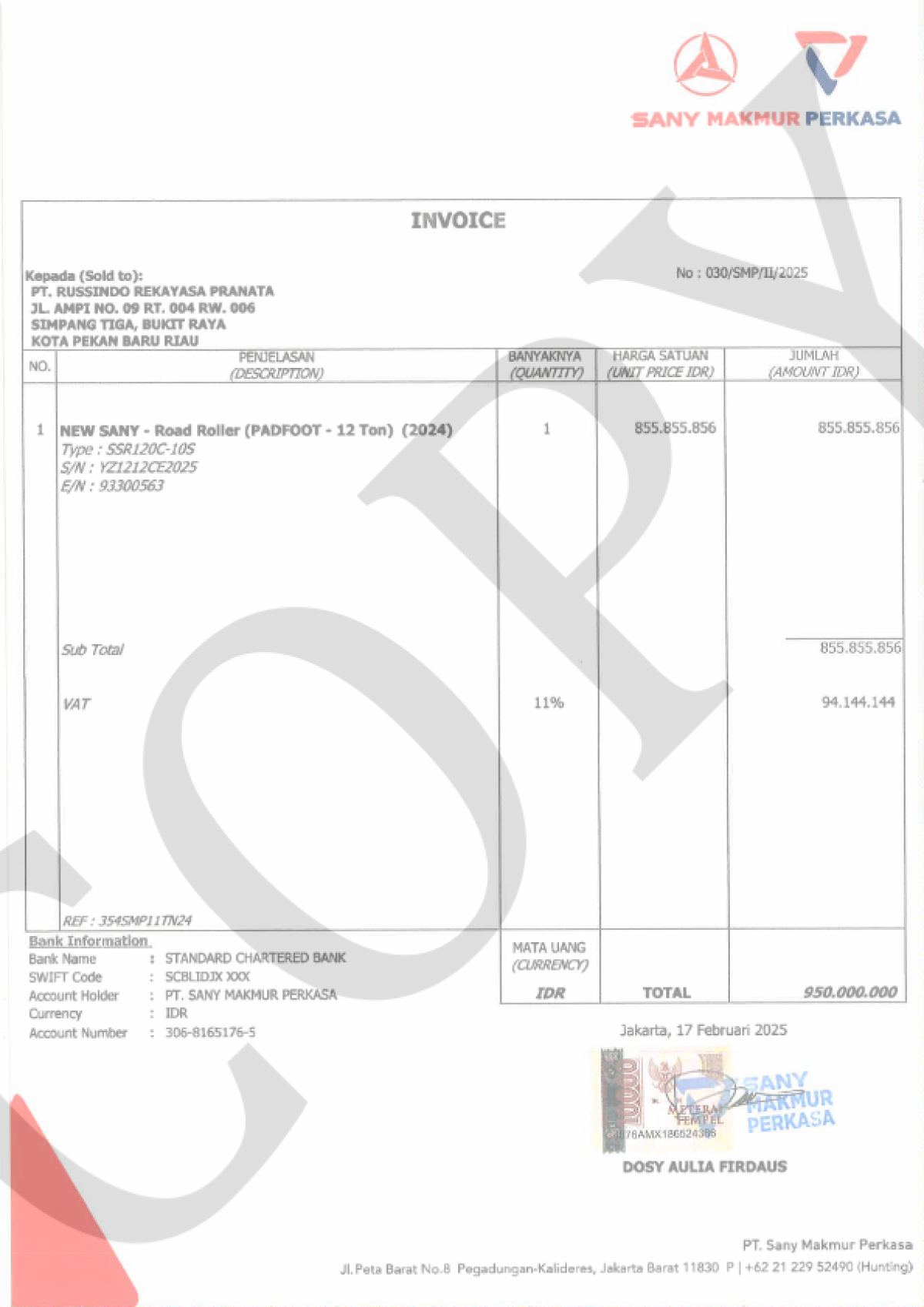 Harga dasar lot ini diatas atau sama dengan Rp500.000.000, - dikenakan minimal deposit Rp25.000.000 // Batas Pembayaran: 5 hari setelah invoice rilis