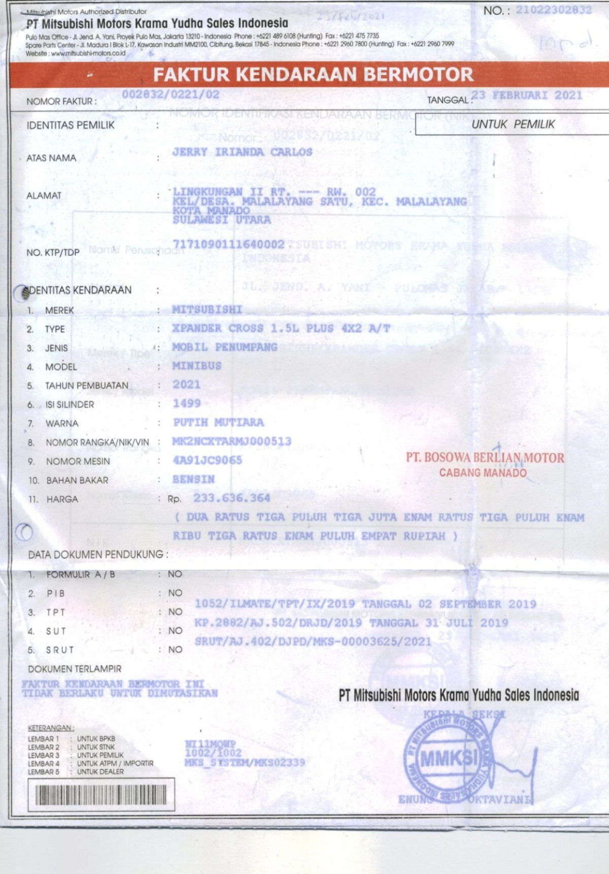 SEBELUM MELAKUKAN PENAWARAN UNIT PESERTA LELANG WAJIB MELAKUKAN PENGECEKAN UNIT DAN DOKUMEN TERLEBIH DAHULU // PIC ERWIN +62 852-5532-9221 / SARDIMAN 089523807733 // UNIT DIKENAKAN BIAYA PPN 1.1% DARI HARGA TERBENTUK //
