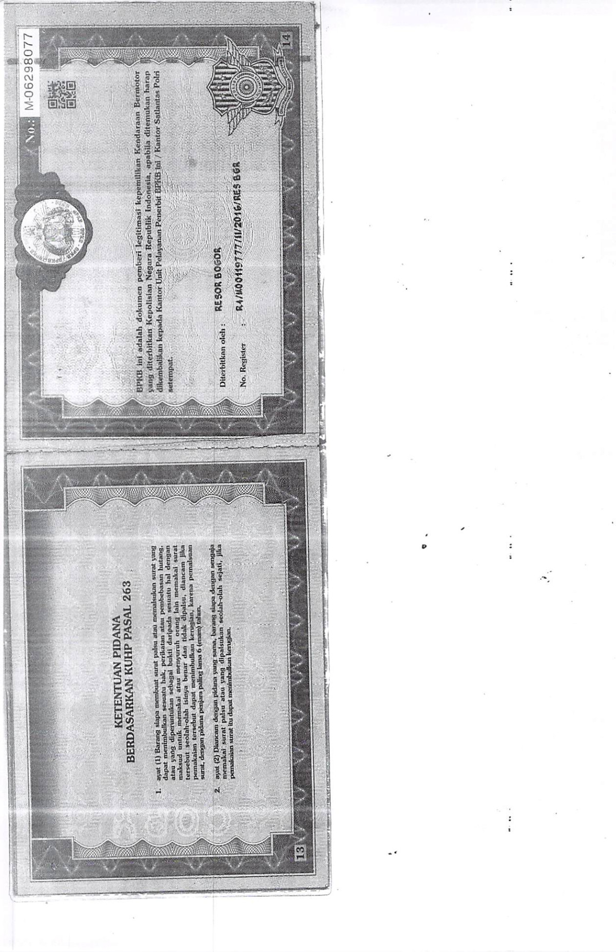 | No. Polisi | : | F 1644 HC |