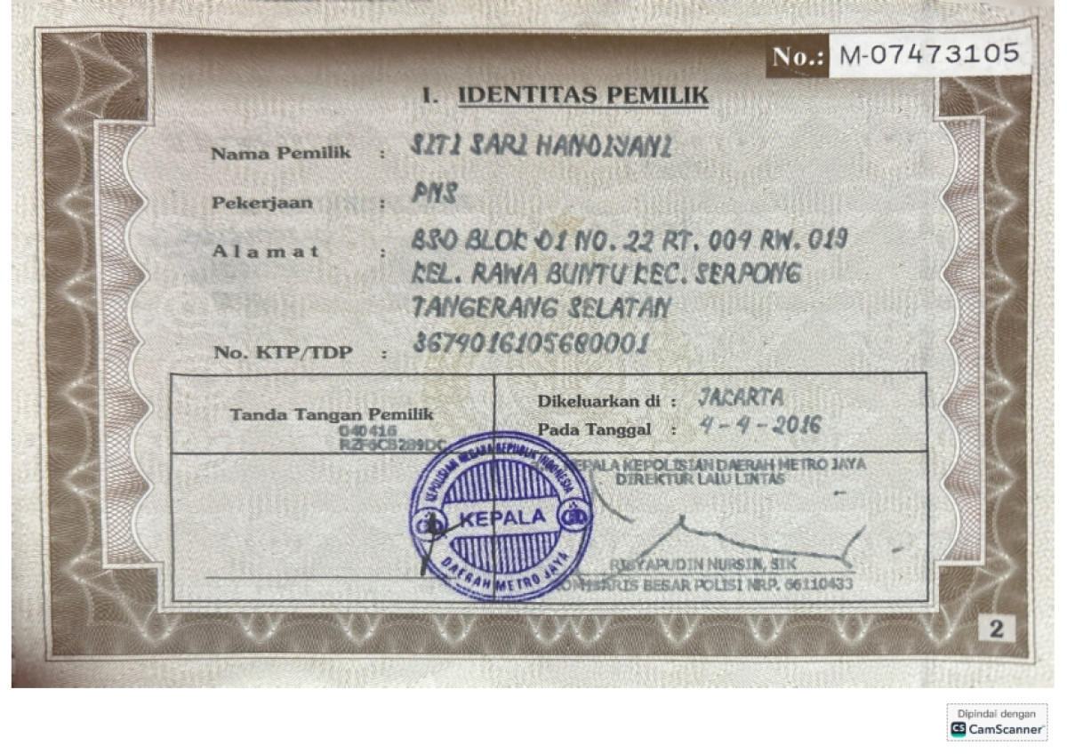 No. Polisi | : | B 2677 NBB |
