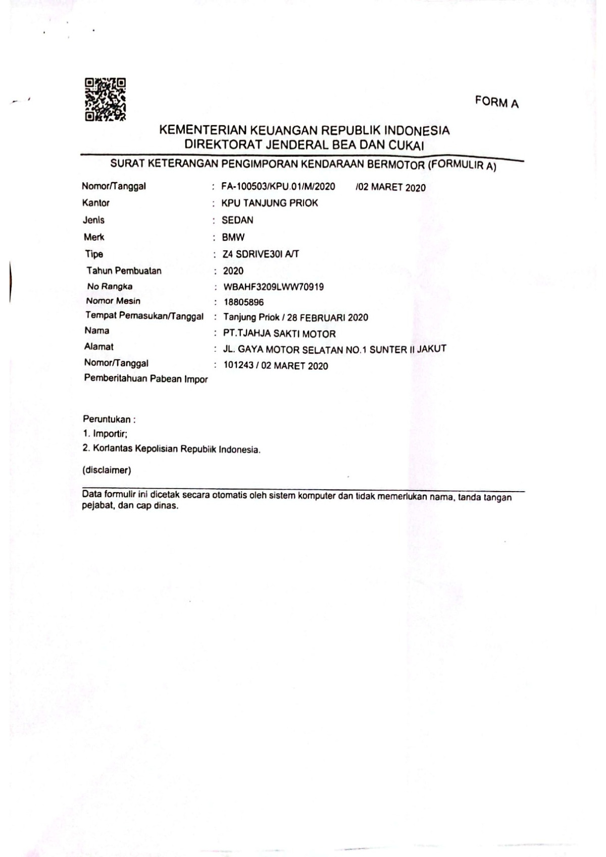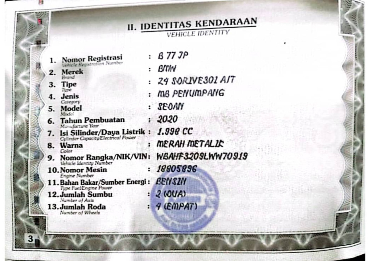 | No. Rangka | : | WBAHF3209LWW70919 |