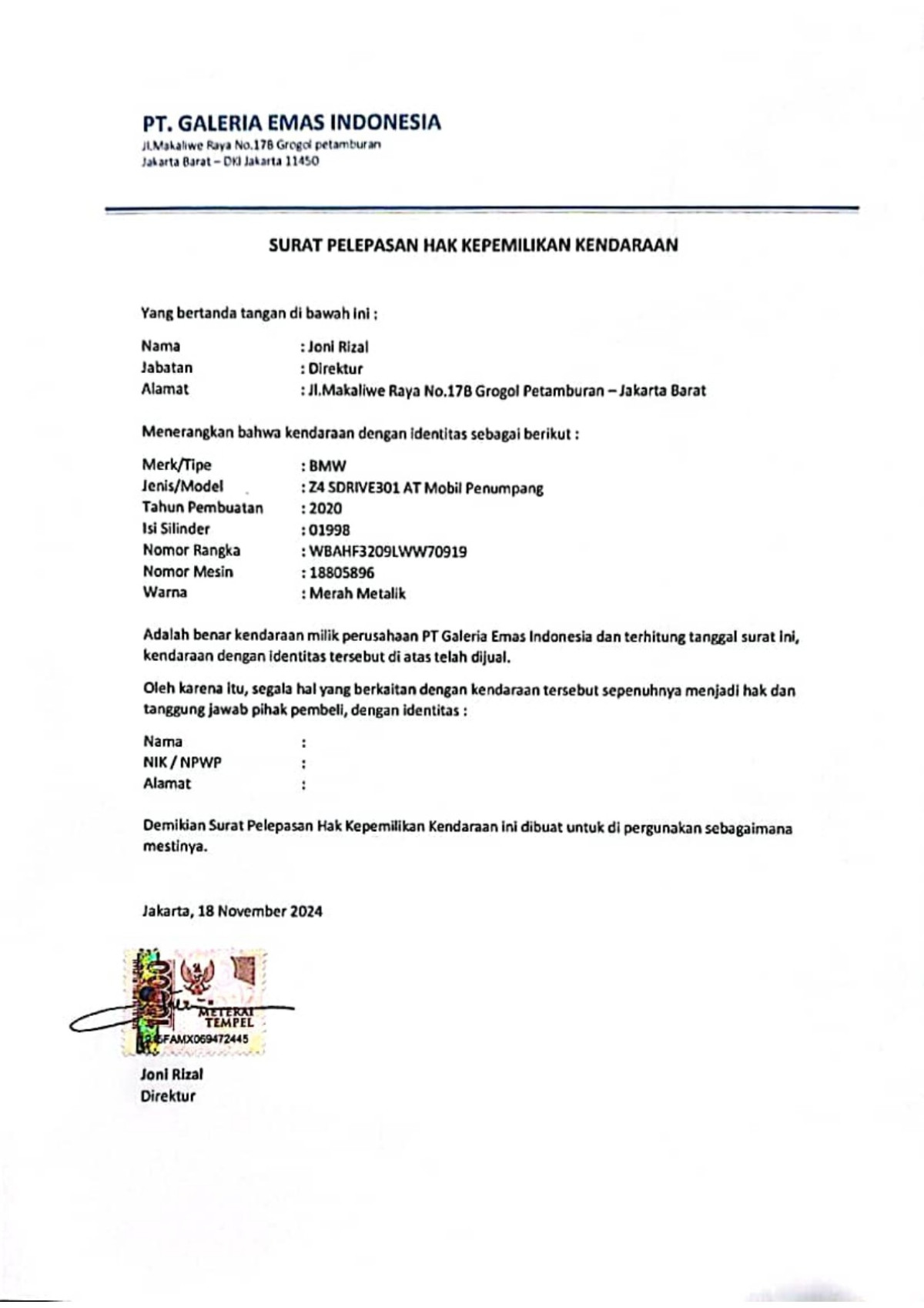 SEBELUM MELAKUKAN PENAWARAN UNIT PESERTA LELANG WAJIB MELAKUKAN PENGECEKAN UNIT DAN DOKUMEN TERLEBIH DAHULU // PIC FIRMAN 62 812-3674-7297 / CHANDRA 0878-6190-3208 / UNIT DIKENAKAN BIAYA PPN 1.1% DARI HARGA TERBENTUK //
