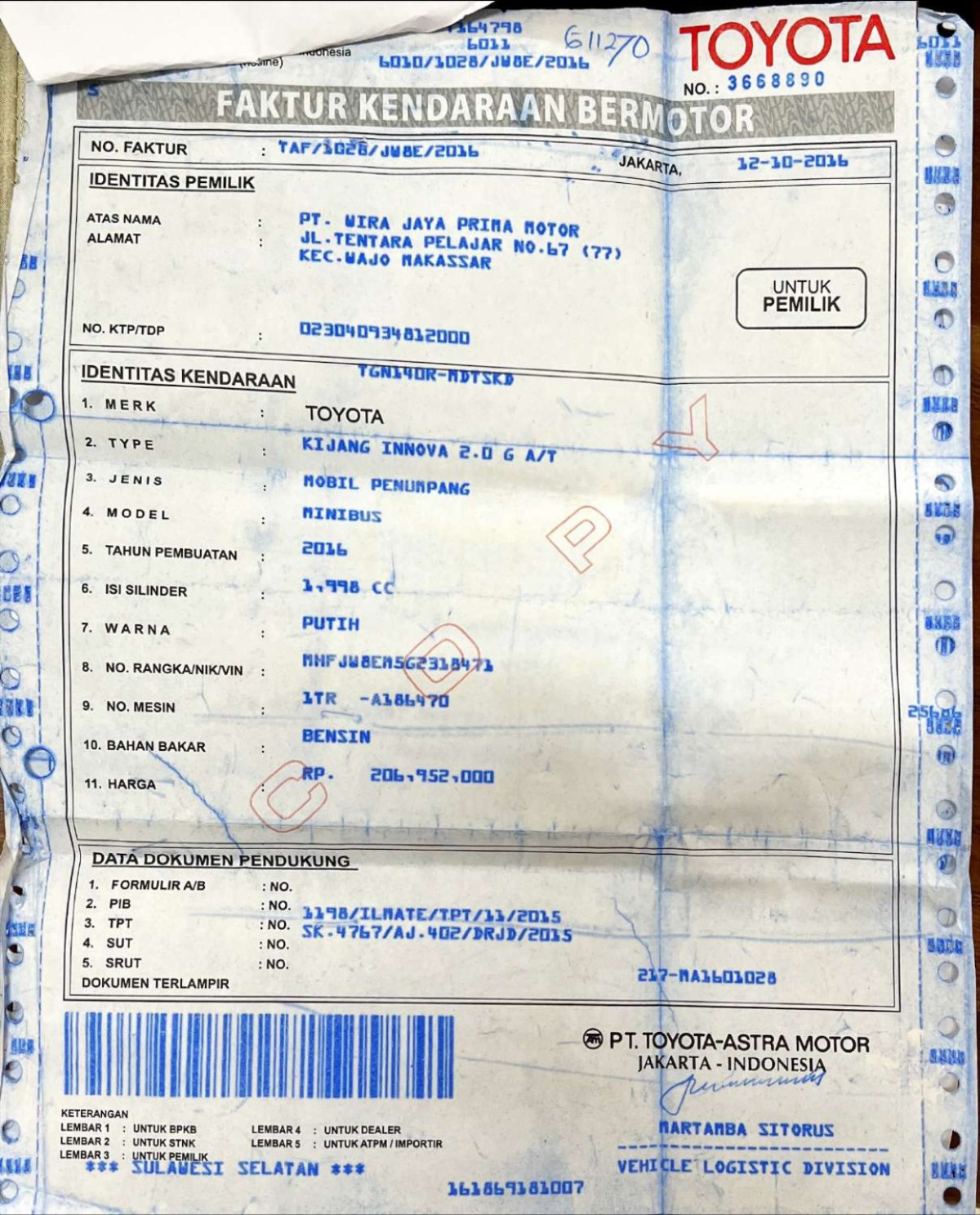 SEBELUM MELAKUKAN PENAWARAN UNIT PESERTA LELANG WAJIB MELAKUKAN PENGECEKAN UNIT DAN DOKUMEN TERLEBIH DAHULU // PIC LULU +62 856-5712-5589//UNIT DIKENAKAN BIAYA PPN 1.1% DARI HARGA TERBENTUK //