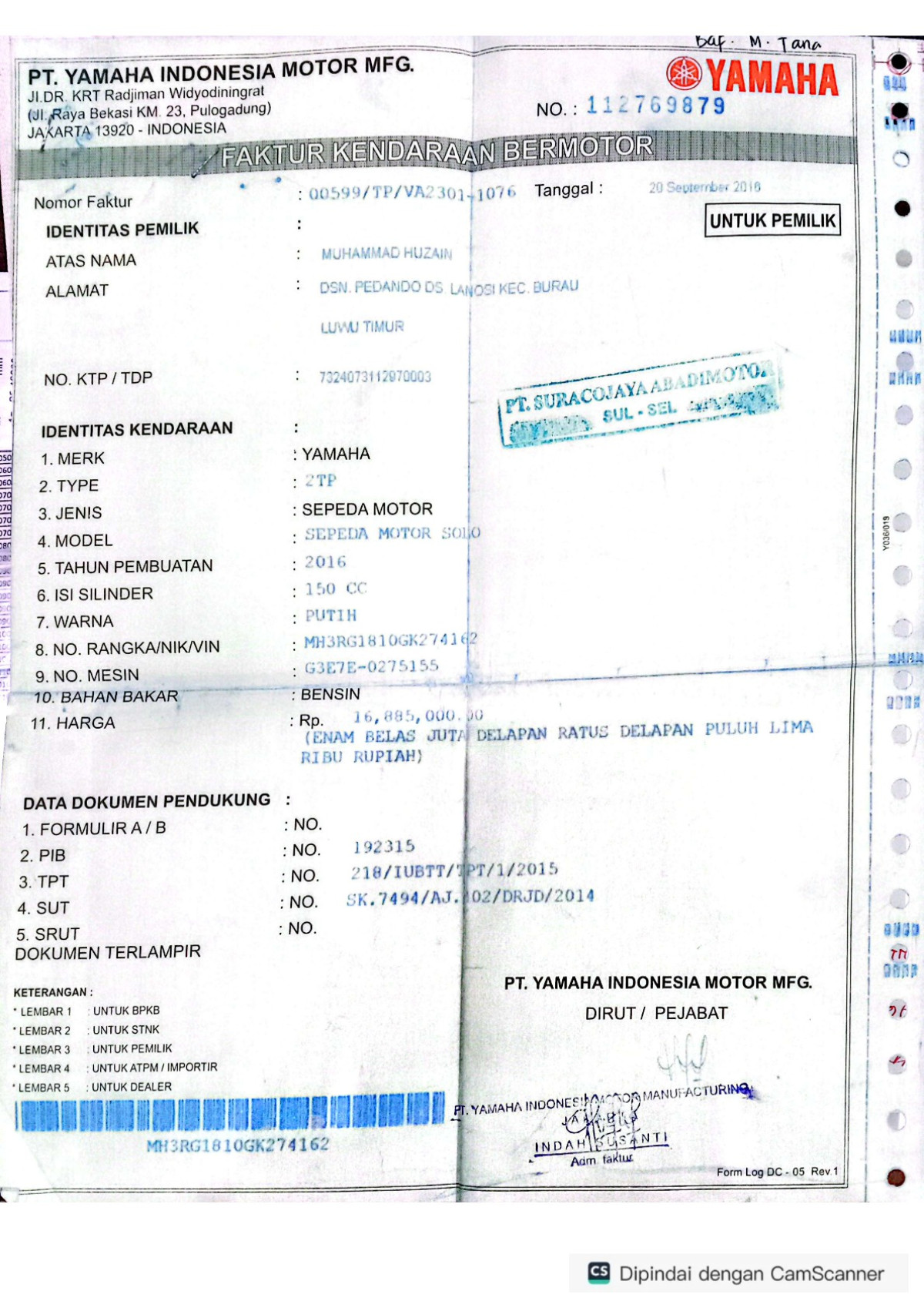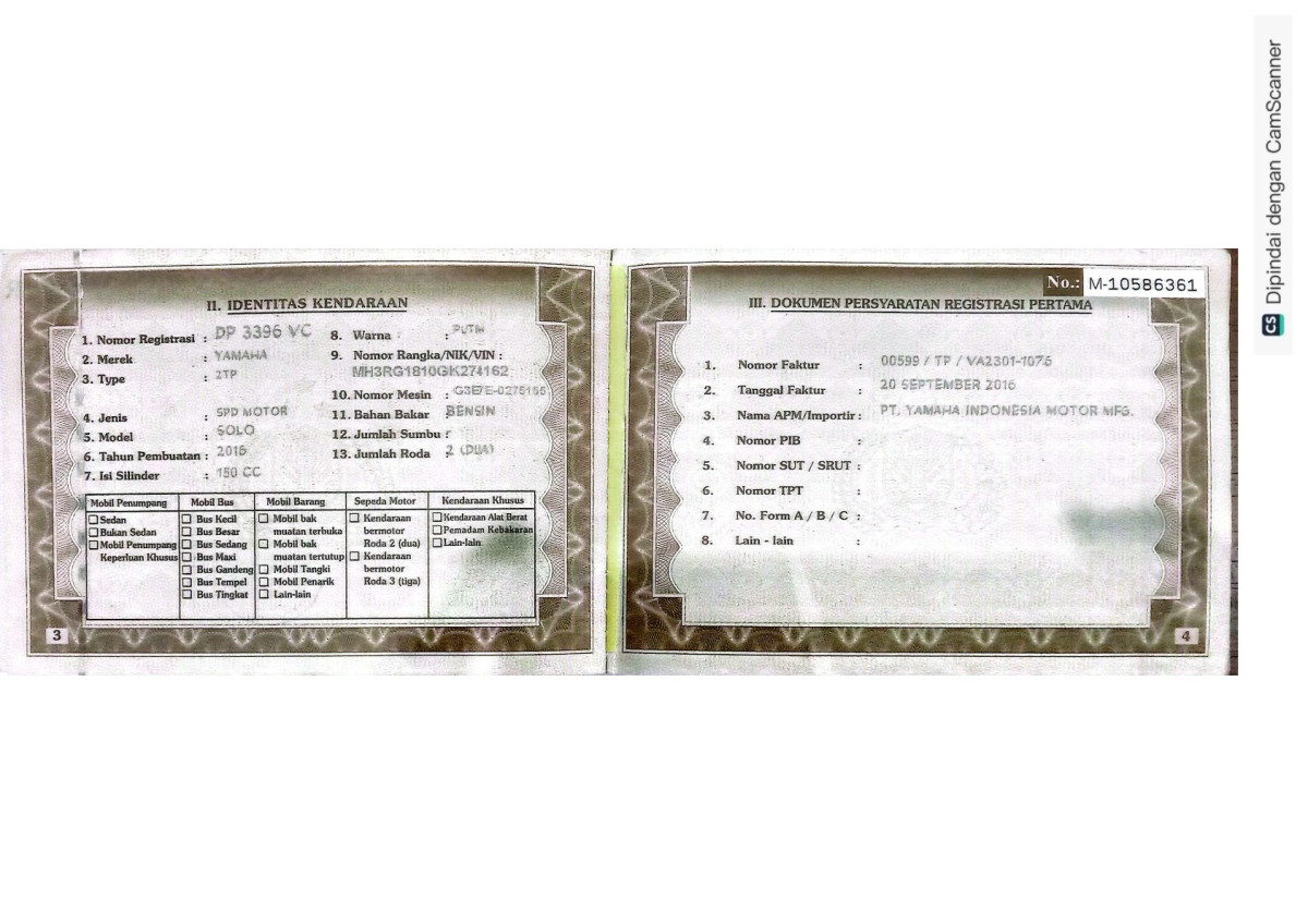 | No. Polisi | : | DP 3396 VC |