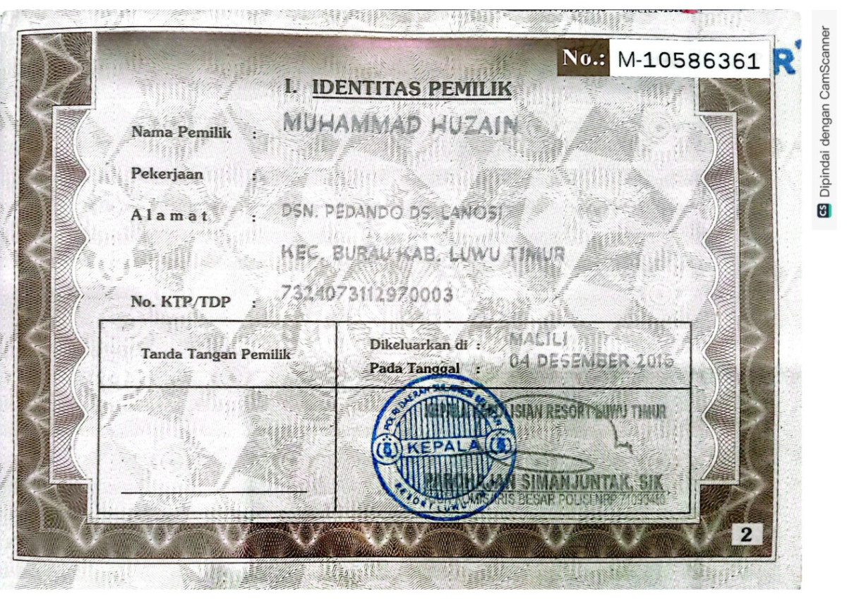 | STNK | : | Ada |