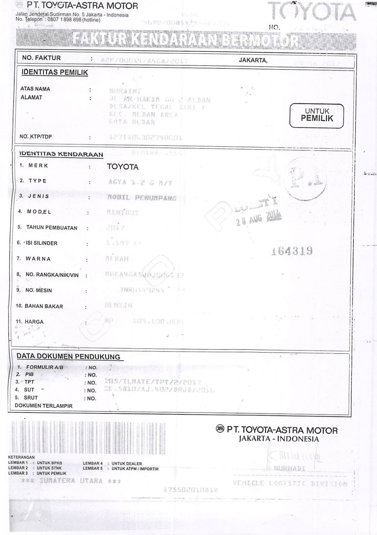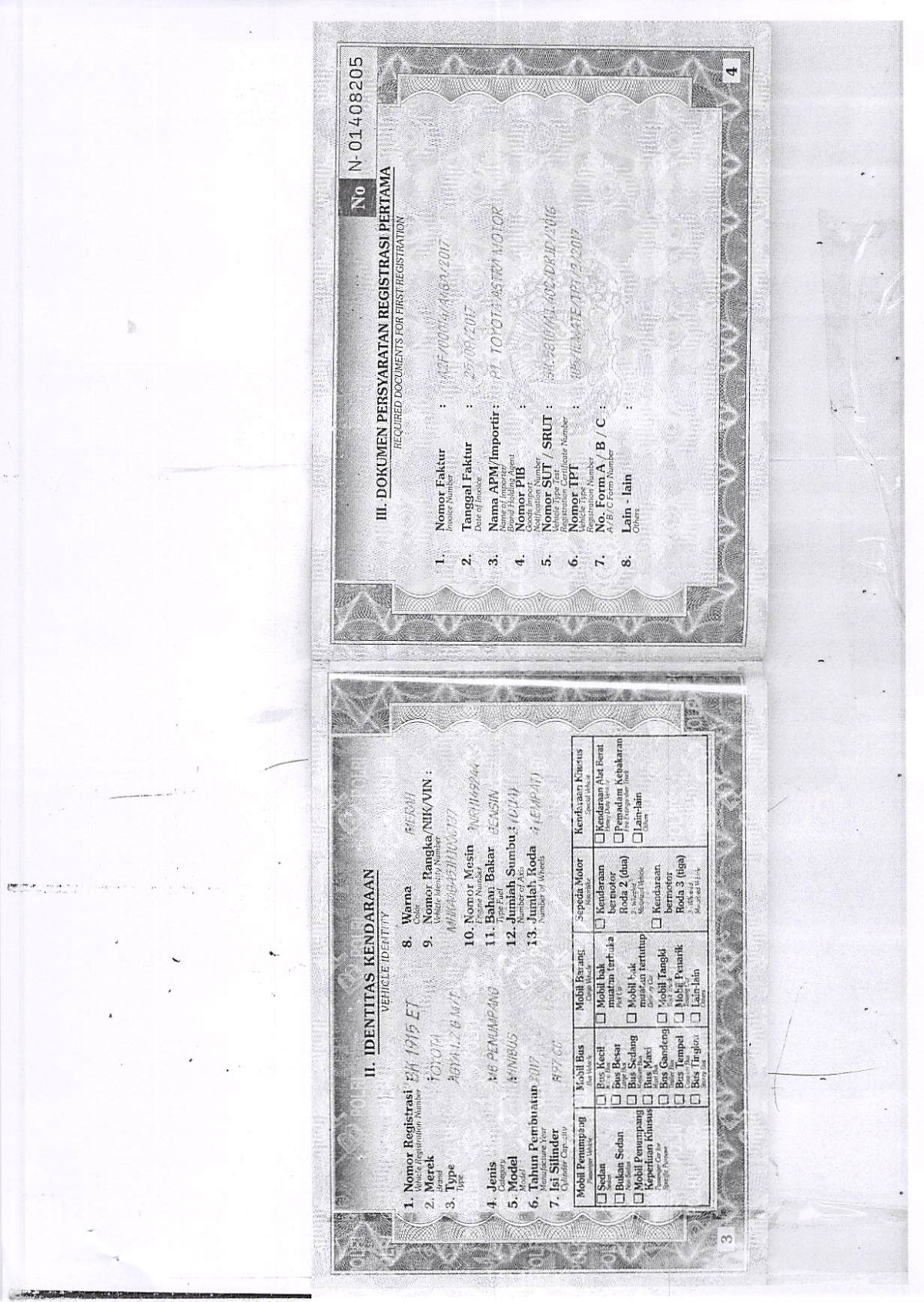 UNIT TIDAK DILAKUKAN PENGECEKAN OLEH TIM SMARTBID// SEBELUM MELAKUKAN PENAWARAN HARAP CEK KONDISI UNIT DAN DOKUMEN TERLEBIH DAHULU// WAJIB MENGHUBUNGI PIC DAN DATANG KE LOKASI UNTUK PENGECEKAN UNIT// UNIT DILELANG APA ADANYA PERMASALAHAN YANG TIMBUL DILUAR TANGGUNG JAWAB SMARTBID// PENGAMBILAN UNIT SLIDE H+2 DARI PELUNASAN // JIKA INGIN MENGAMBIL UNIT HARAP UNTUK KONFIRMASI DAHULU KE SMARTBID // JIKA YANG MENGAMBIL BIDDER HARAP MEMBAWA KTP ASLI // JIKA PENGAMBILAN DIWAKILKAN WAJIB MEMBAWA SURAT KUASA ASLI // UNIT DIKENAKAN BIAYA PPN 1,1% DARI HARGA TERBENTUK// LOKASI UNIT HUBUNGI CS PUSAT 081188089292// MESIN TIDAK HIDUP (MESIN JIM/ BAGIAN DEKSEL RUSAK), BODY BARET, HEAD LAMP BURAM, BUMPER DEPAN KANAN BOLONG, BAN TIPIS//Fuel Pump | Tire (Rr-L) | Shocbreakers (Fr) | Tire (Fr-R) | Tire (Rr-R) | Brake Master | Battery | Brake Pad (Fr) | Aircon Evaporator | Wheel Bearing (Rr) | Check Engine Indikator | Spare Key (immobilizer) | Engine Cover Valve | Radiator | Engine Services (Heavy) | Brake Pad (Rr) | Remote | Engine Mounting | Injector | Tire (spare) | Radiator Fan | Wheel Bearing (Fr) | Rack Steer | Fan Belt | Power Steering | Clutch Bearing | Coil Ignition | Spark Plug(s) | Shocbreakers (Rr) | Dynamo Starter | Tire (Fr-L) | Gasket Cylinder Head | Gasket Cover Head | Clutch Plate/Head Unit | Horn | Central Lock | Carpet Floor (FR-L) | Carpet Floor (Mid) | Carpet | Carpet Floor (RR) | Interior Saloon | Carpet Floor (FR-R) | Bolt Crane and Jack | Tool Kit/Headlight (Fr-R) | Headlight (Fr-L) | Door Repair (Rr-L) | Roof Repair | Door Repair (Rr-R) | Door Repair (Trunk) | Fender Repair (Rr-R) | Door Repair (Fr-L) | Fender Repair (Fr-R) | Engine Hood Repair | Door Repair (Fr-R) | Fender Repair (Fr-L) | Fender Repair (Rr-L) | Bumper Repair (Rr) | Bumper Repair (Fr) // NOPOL FISIK TA