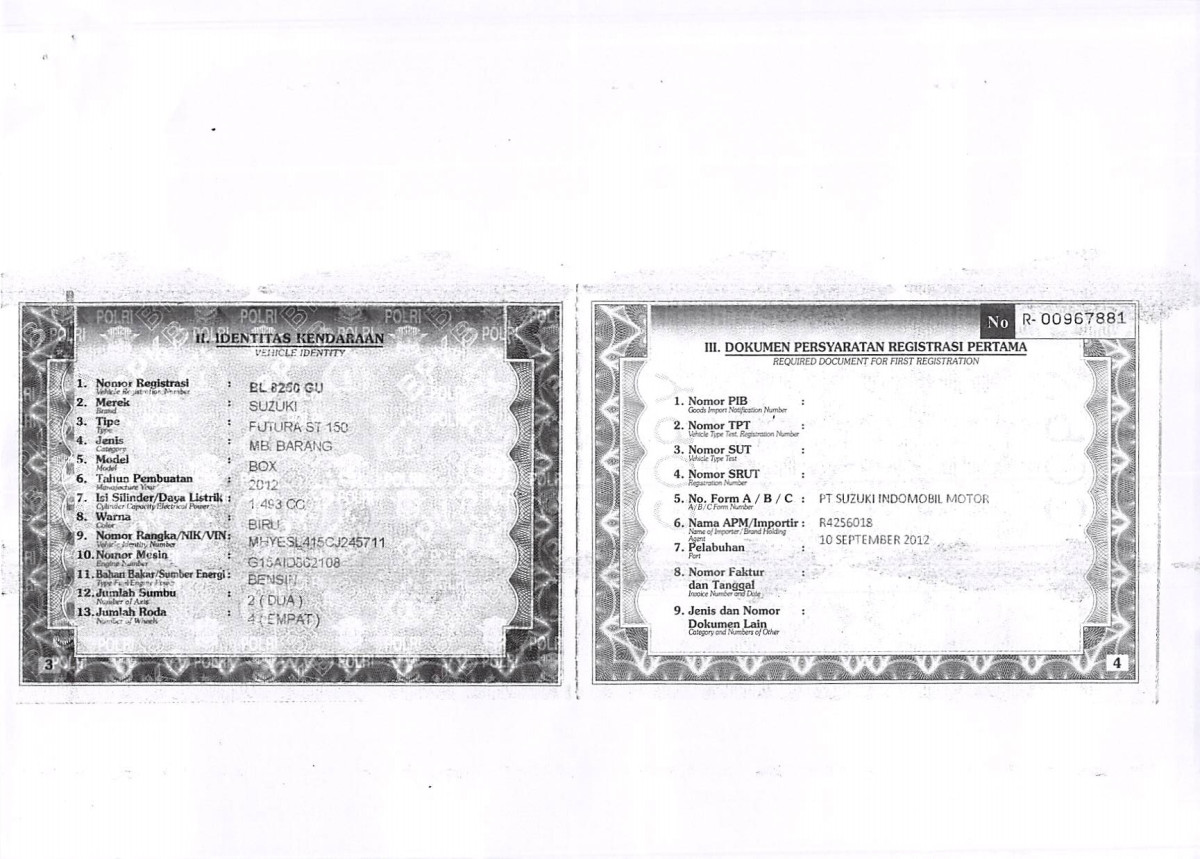 UNIT TIDAK DILAKUKAN PENGECEKAN OLEH TIM SMARTBID// SEBELUM MELAKUKAN PENAWARAN HARAP CEK KONDISI UNIT DAN DOKUMEN TERLEBIH DAHULU// WAJIB MENGHUBUNGI PIC DAN DATANG KE LOKASI UNTUK PENGECEKAN UNIT// UNIT DILELANG APA ADANYA PERMASALAHAN YANG TIMBUL DILUAR TANGGUNG JAWAB SMARTBID// PENGAMBILAN UNIT SLIDE H+2 DARI PELUNASAN // JIKA INGIN MENGAMBIL UNIT HARAP UNTUK KONFIRMASI DAHULU KE SMARTBID // JIKA YANG MENGAMBIL BIDDER HARAP MEMBAWA KTP ASLI // JIKA PENGAMBILAN DIWAKILKAN WAJIB MEMBAWA SURAT KUASA ASLI // UNIT DIKENAKAN BIAYA PPN 1,1% DARI HARGA TERBENTUK// LOKASI UNIT HUBUNGI CS PUSAT 081188089292// MESIN HIDUP, KUNCI KONTAK TIDAK ADA, OLI MESIN REMBUSH, BODY BARET, BAN TIPIS, LANTAI BAK BERKARAT, KNALPOT INITASI, STOP LAMP PECAH, HEAD UNIT T/A, LANTAI KABIN BERKARAT, NOPOL DIUNIT NOPOL PALSU, FAKTUR BPKB TIDAK ADA, BAN CADANGAN T/A//Tire (Rr-L) | Tire (spare) | Gasket Cylinder Head | Air Filter | Coil Ignition | Rim (spare) | Tire (Rr-R) | Key (no immobilizer) | Tire (Fr-R) | Engine Mounting | Shocbreakers (Rr) | Wheel Bearing (Fr) | Engine Services (Light) | Wheel Bearing (Rr) | Muffler | Fan Belt | Shocbreakers (Fr) | Brake Pad (Rr) | Tire (Fr-L) | Brake Pad (Fr) | Clutch Plate | Injector | Spark Plug(s) | Battery | Rack Steer/Ceiling Trim | Interior Saloon | Head Unit | Bolt Crane and Jack | Tool Kit | Carpet/License Plat | Taillight (Rr-L) | Rim cover (Fr-R) | Rim cover (Fr-L) | Rim cover (Rr-L) | Cargo Panel Repair (Deck) | Turn Lamp (Rr-R) | Rim cover (Rr-R) | Turn Lamp (Rr-L) | Door Repair (Fr-L) | Cabin Repair | Taillight (Rr-R) | Front Panel Repair | Roof Repair | Bumper Repair (Rr) | Door Repair (Fr-R) | Fender Repair (Fr-R) | Bumper Repair (Fr) | Fender Repair (Fr-L)// NOPOL FISIK DAN DOKUMEN BERBEDA / NOPOL FISIK "BL 8239 C" / NOPOL BPKB "BL 8250 GU" / INDIKASI BBN GANTUNG //