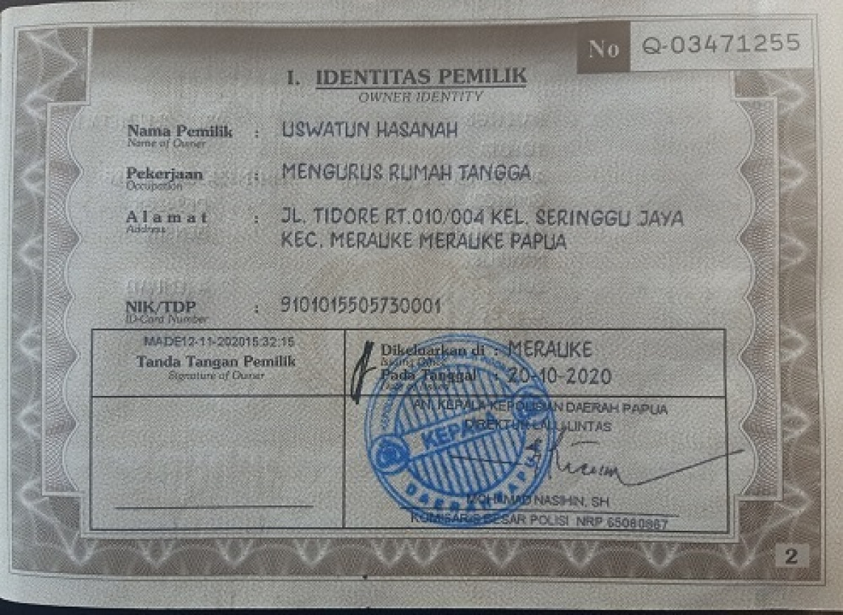 No. Rangka | : | MHFM1BA3JAK247386 |