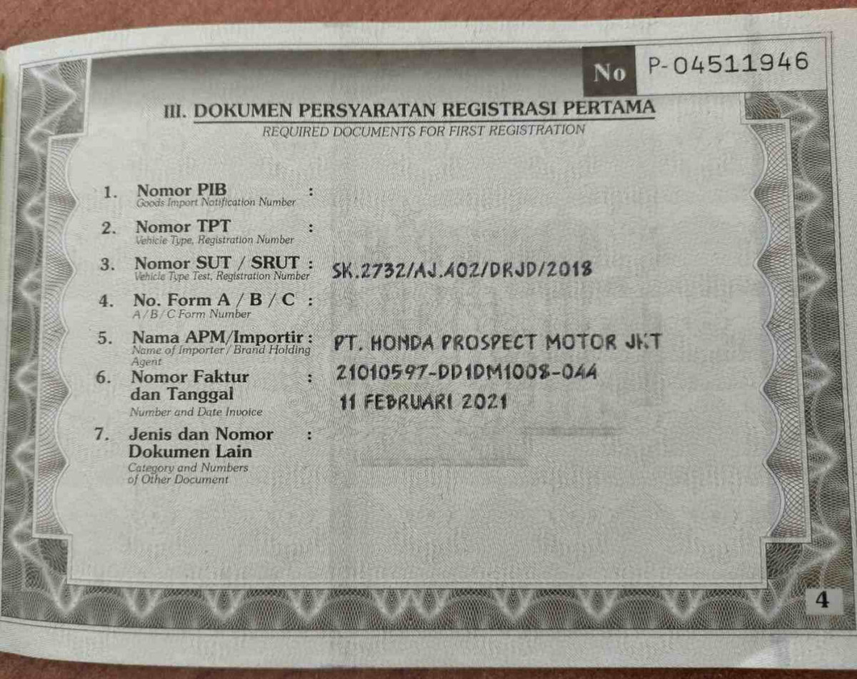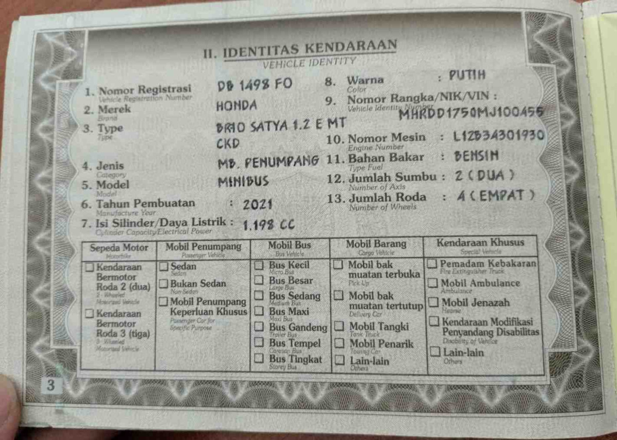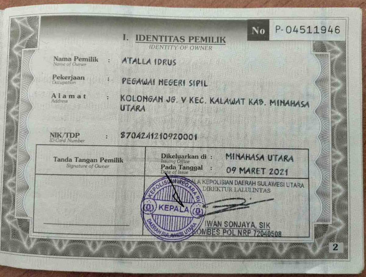 No. Polisi | : | DG 1213 KL |