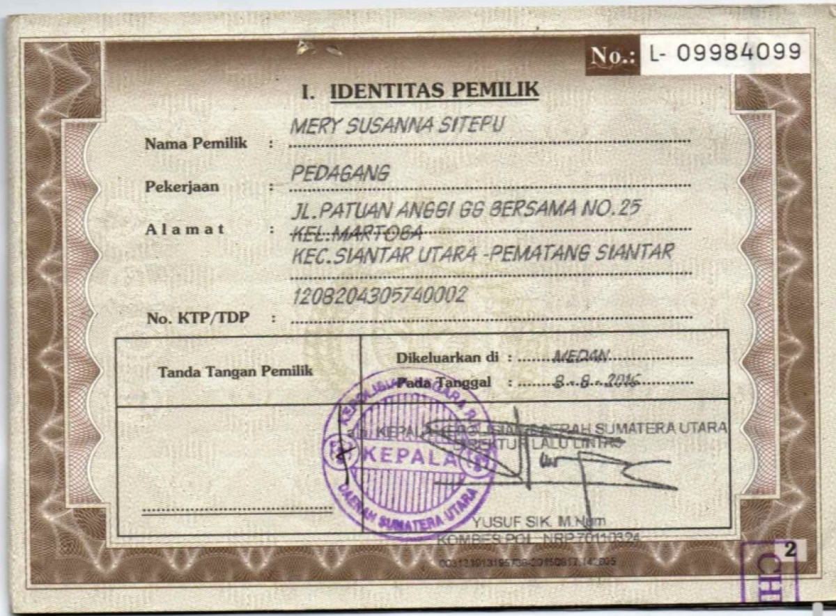 | No. Rangka | : | MHKP3CA1JGK118255 |