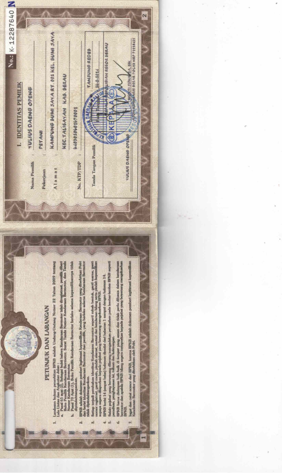 | KWT Blangko | : | Tidak Ada |