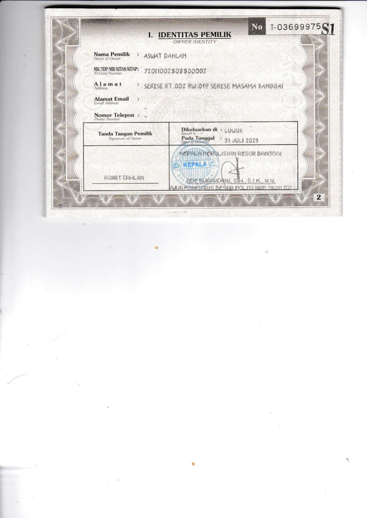 KWT Blangko | : | Tidak Ada |