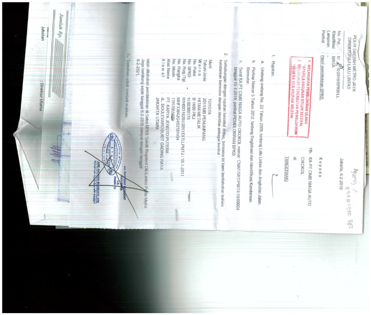 ADA PERBEDAAN NOPOL FISIK (B 2842 KKX) DENGAN NOPOL DOKUMEN ( B 1669 PKJ )// INDIKASI NOPOL PALSU/BBN GANTUNG// SEBELUM MELAKUKAN PENAWARAN UNIT PESERTA LELANG WAJIB MELAKUKAN PENGECEKAN UNIT DAN DOKUMEN TERLEBIH DAHULU // UNIT DIKENAKAN BIAYA PPN 1.1% DARI HARGA TERBENTUK // WANDA :62 858-6767-0166
