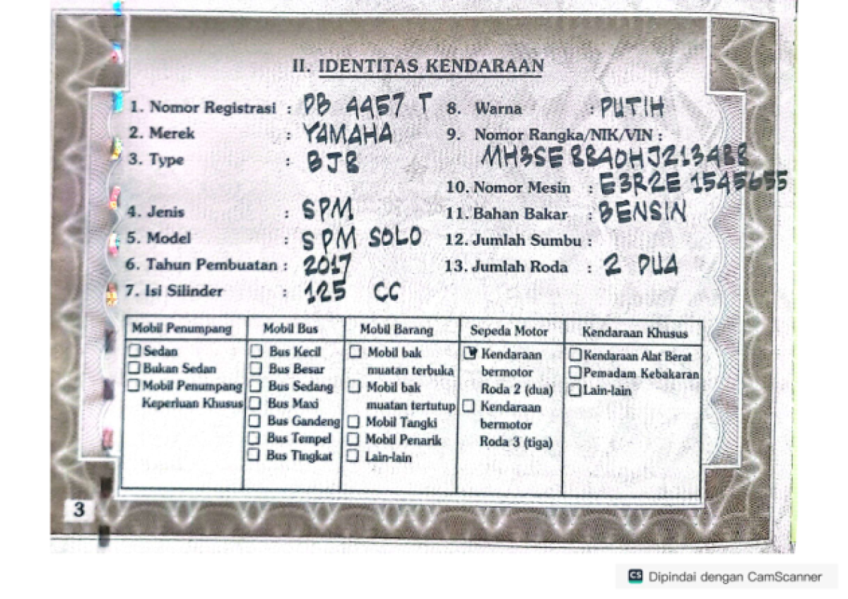 | No. Rangka | : | MH3SE8840HJ213488 |