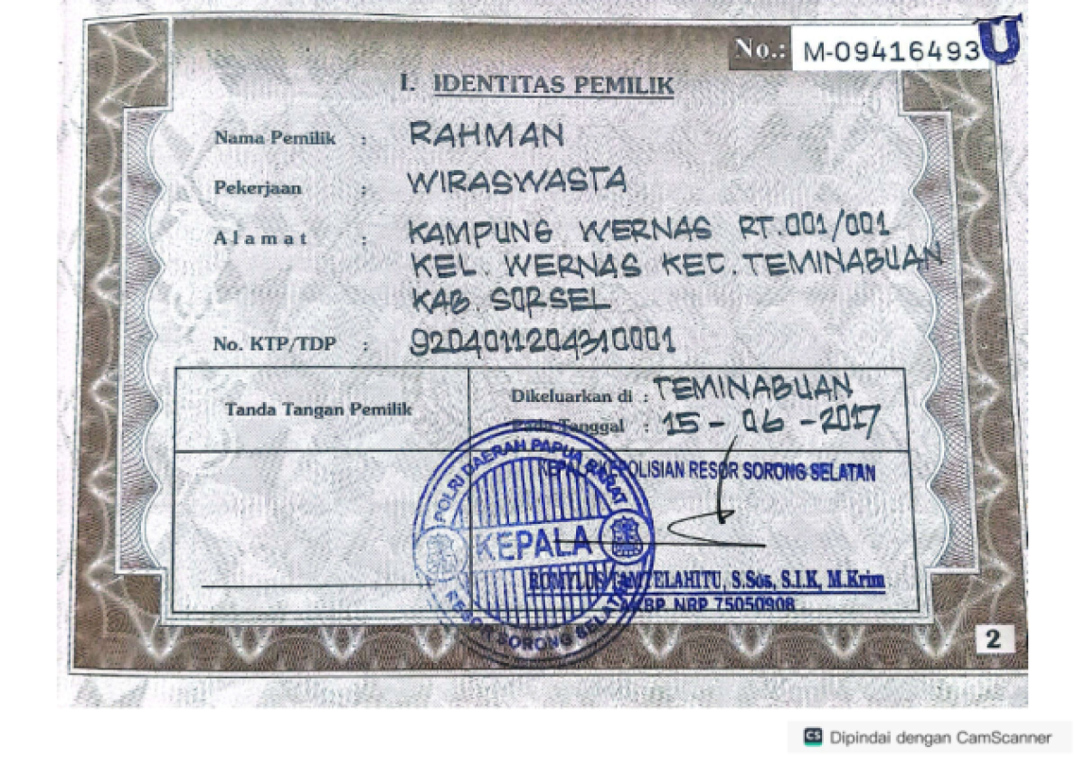 | No. Rangka | : | MH3SE9010GJ192799 |