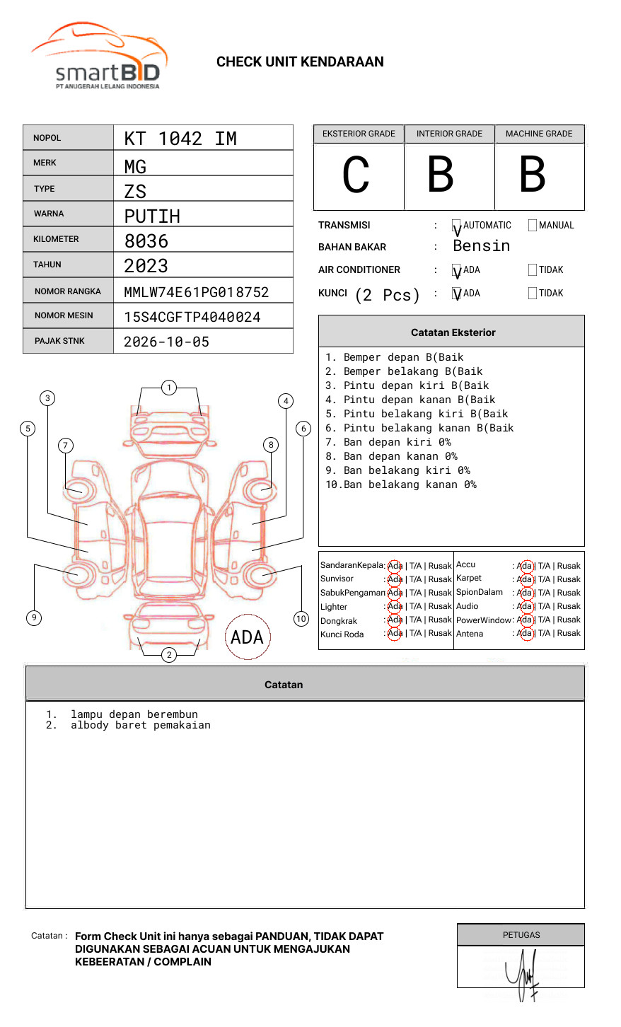 SEBELUM MELAKUKAN PENAWARAN UNIT PESERTA LELANG WAJIB MELAKUKAN PENGECEKAN UNIT DAN DOKUMEN TERLEBIH DAHULU // PIC PUTRA YADI 0821-2783-7606 // GUSTI 0822-5053-1175 // UNIT DIKENAKAN BIAYA PPN 1.1% DARI HARGA TERBENTUK //