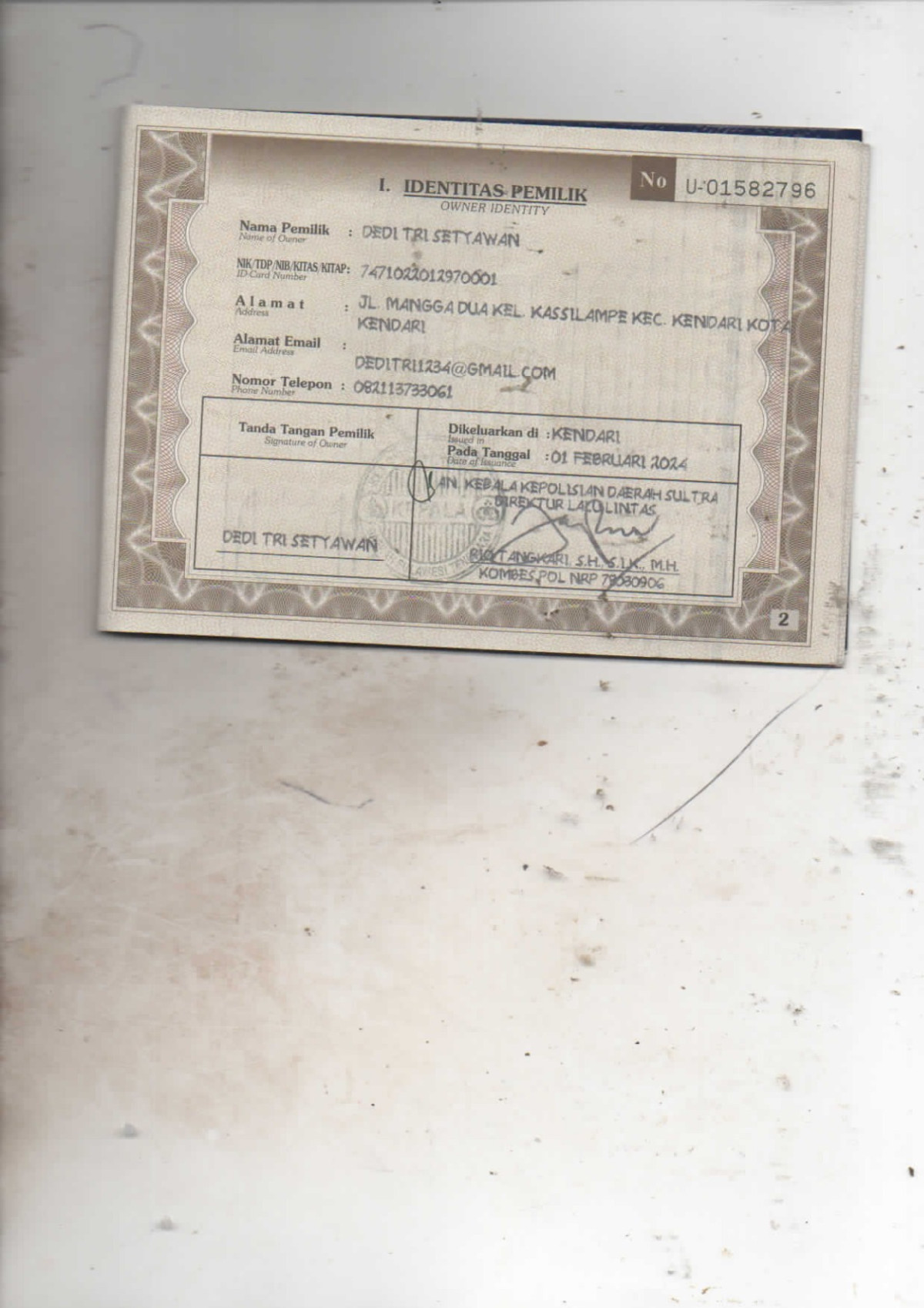 UNIT TIDAK DILAKUKAN PENGECEKAN OLEH TIM SMARTBID// SEBELUM MELAKUKAN FOTO NOKA DAN NOSIN T/A // PENAWARAN HARAP CEK KONDISI UNIT DAN DOKUMEN TERLEBIH DAHULU// WAJIB MENGHUBUNGI PIC DAN DATANG KE LOKASI UNTUK PENGECEKAN UNIT// UNIT DILELANG APA ADANYA PERMASALAHAN YANG TIMBUL DILUAR TANGGUNG JAWAB SMARTBID// PENGAMBILAN UNIT SLIDE H+2 DARI PELUNASAN // JIKA INGIN MENGAMBIL UNIT HARAP UNTUK KONFIRMASI DAHULU KE SMARTBID // JIKA YANG MENGAMBIL BIDDER HARAP MEMBAWA KTP ASLI // JIKA PENGAMBILAN DIWAKILKAN WAJIB MEMBAWA SURAT KUASA ASLI // HUBUNGI PIC Juhan +62 821-9499-7007 / HUB CS PUSAT 0811119678
