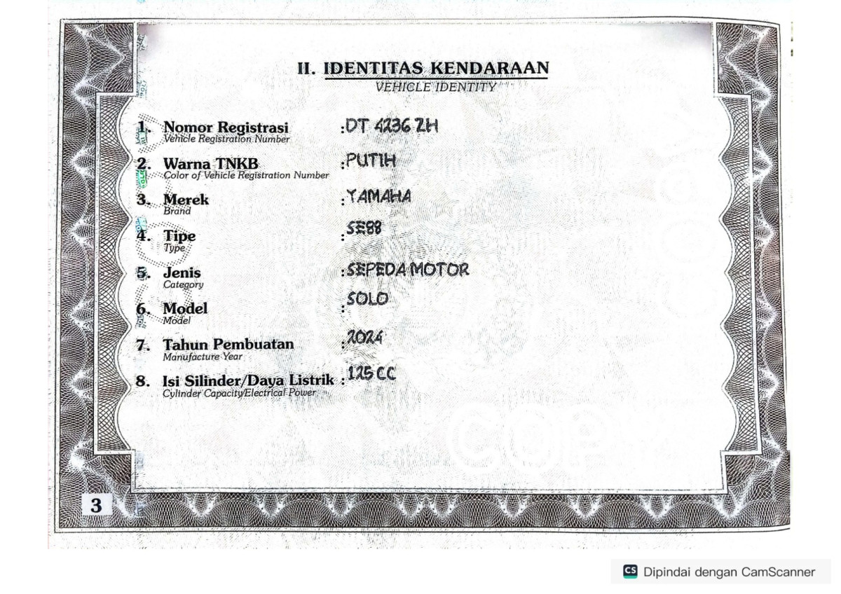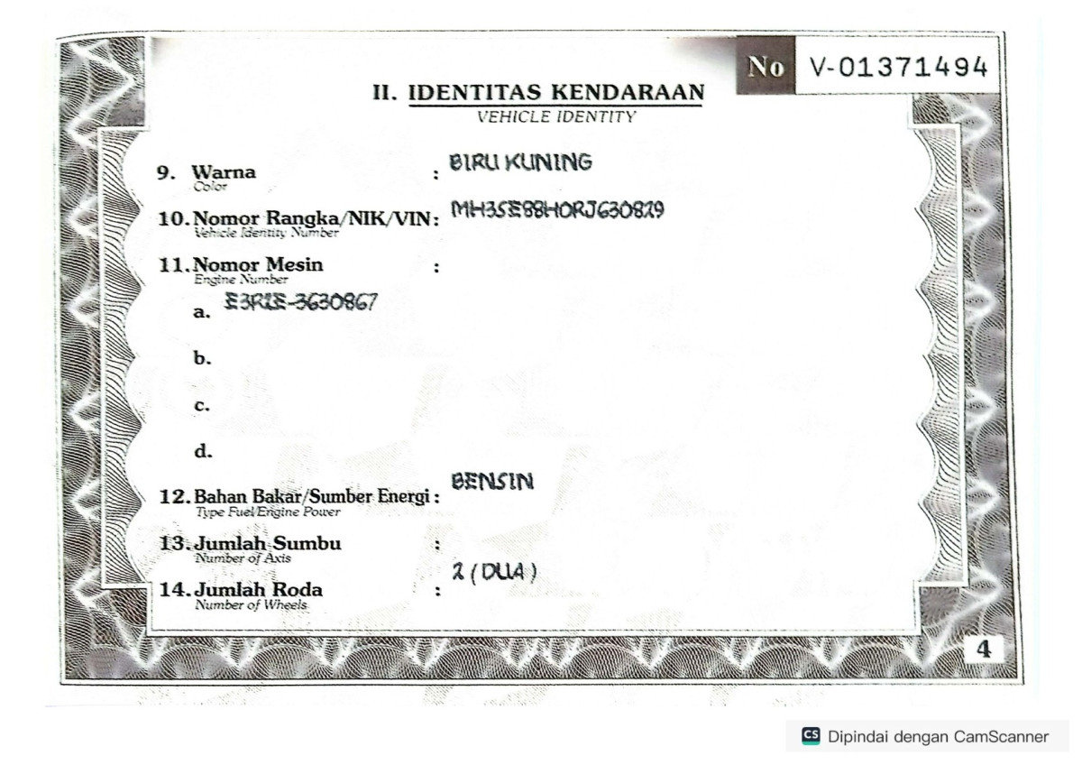 | No. Rangka | : | MH3SE88H0RJ630829 |