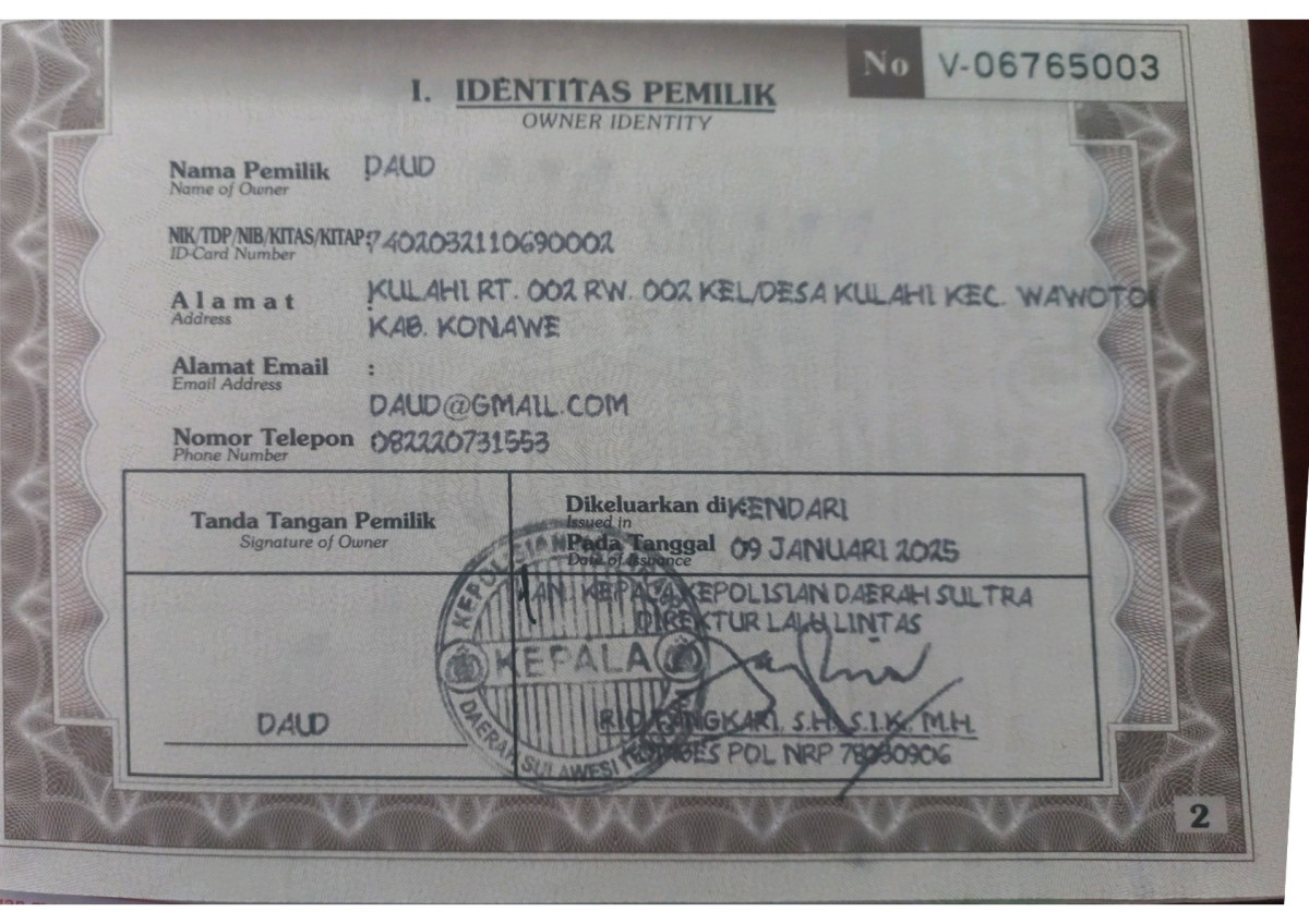 NOPOL FISIK T/A // FOTO NOKA DAN NOSIN T/A // UNIT TIDAK DILAKUKAN PENGECEKAN OLEH TIM SMARTBID// SEBELUM MELAKUKAN PENAWARAN HARAP CEK KONDISI UNIT DAN DOKUMEN TERLEBIH DAHULU// WAJIB MENGHUBUNGI PIC DAN DATANG KE LOKASI UNTUK PENGECEKAN UNIT// UNIT DILELANG APA ADANYA PERMASALAHAN YANG TIMBUL DILUAR TANGGUNG JAWAB SMARTBID// PENGAMBILAN UNIT SLIDE H+2 DARI PELUNASAN // JIKA INGIN MENGAMBIL UNIT HARAP UNTUK KONFIRMASI DAHULU KE SMARTBID // JIKA YANG MENGAMBIL BIDDER HARAP MEMBAWA KTP ASLI // JIKA PENGAMBILAN DIWAKILKAN WAJIB MEMBAWA SURAT KUASA ASLI // HUBUNGI PIC Juhan +62 821-9499-7007 / HUB CS PUSAT 0811119678