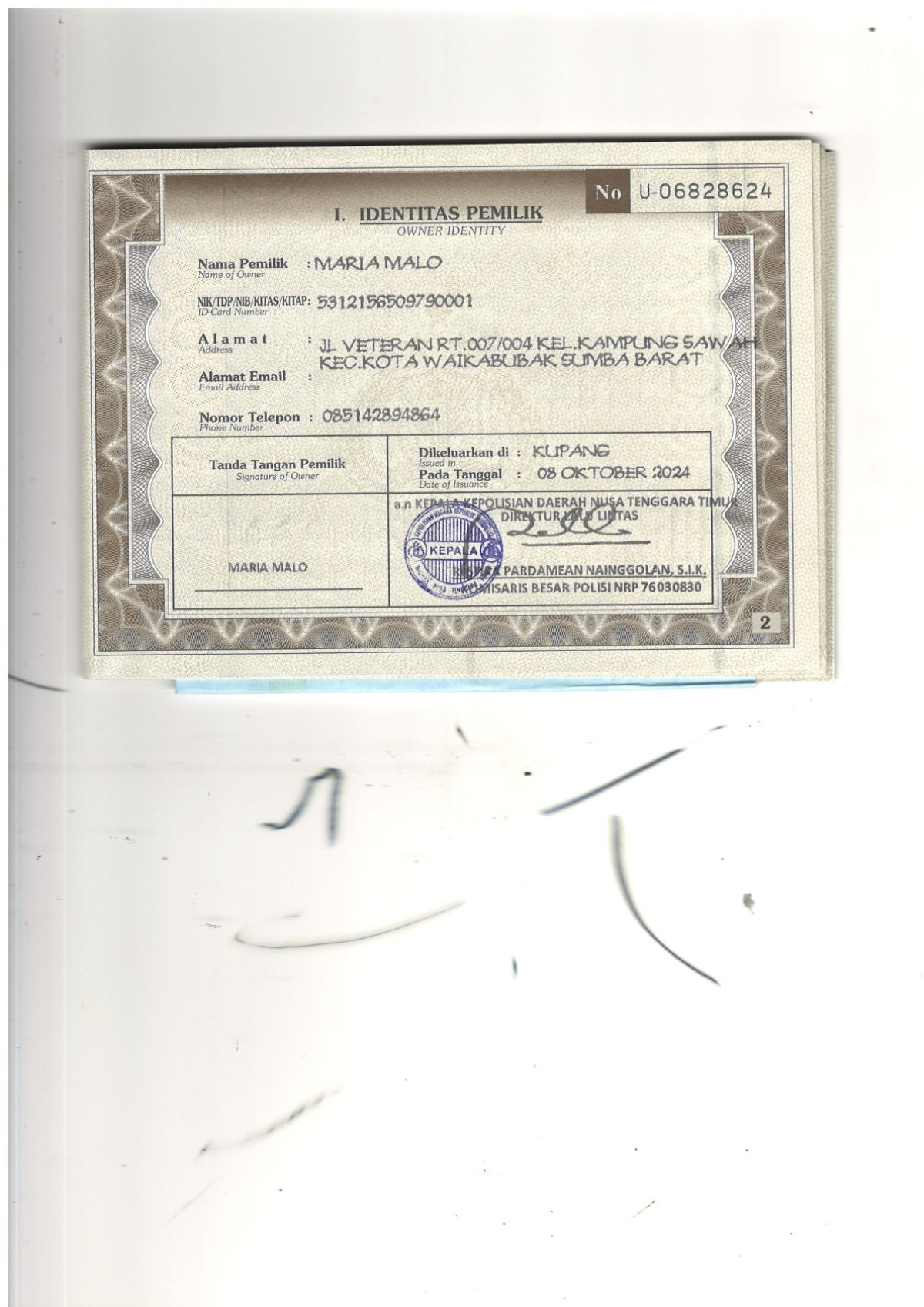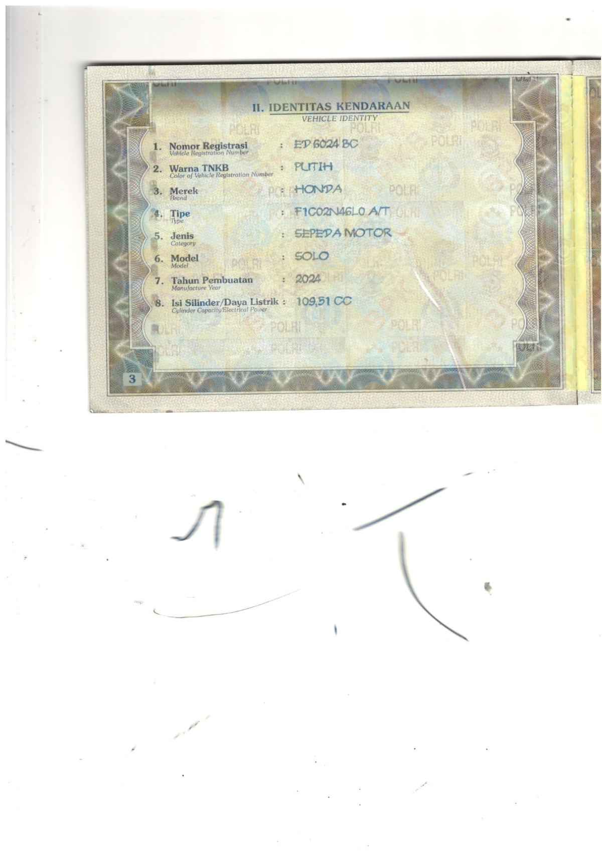 | No. Polisi | : | ED 6024 BC |