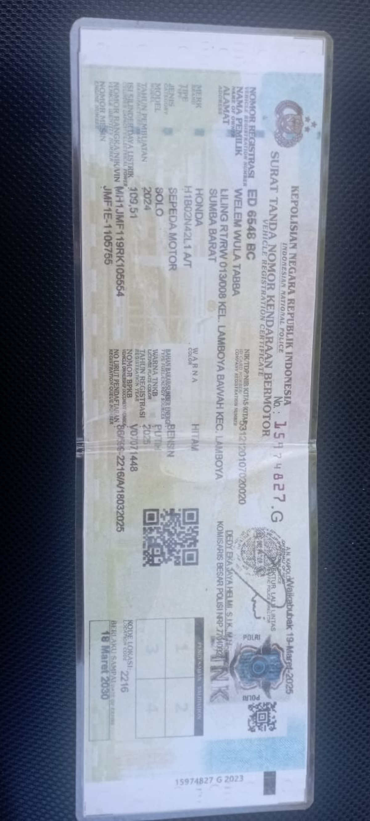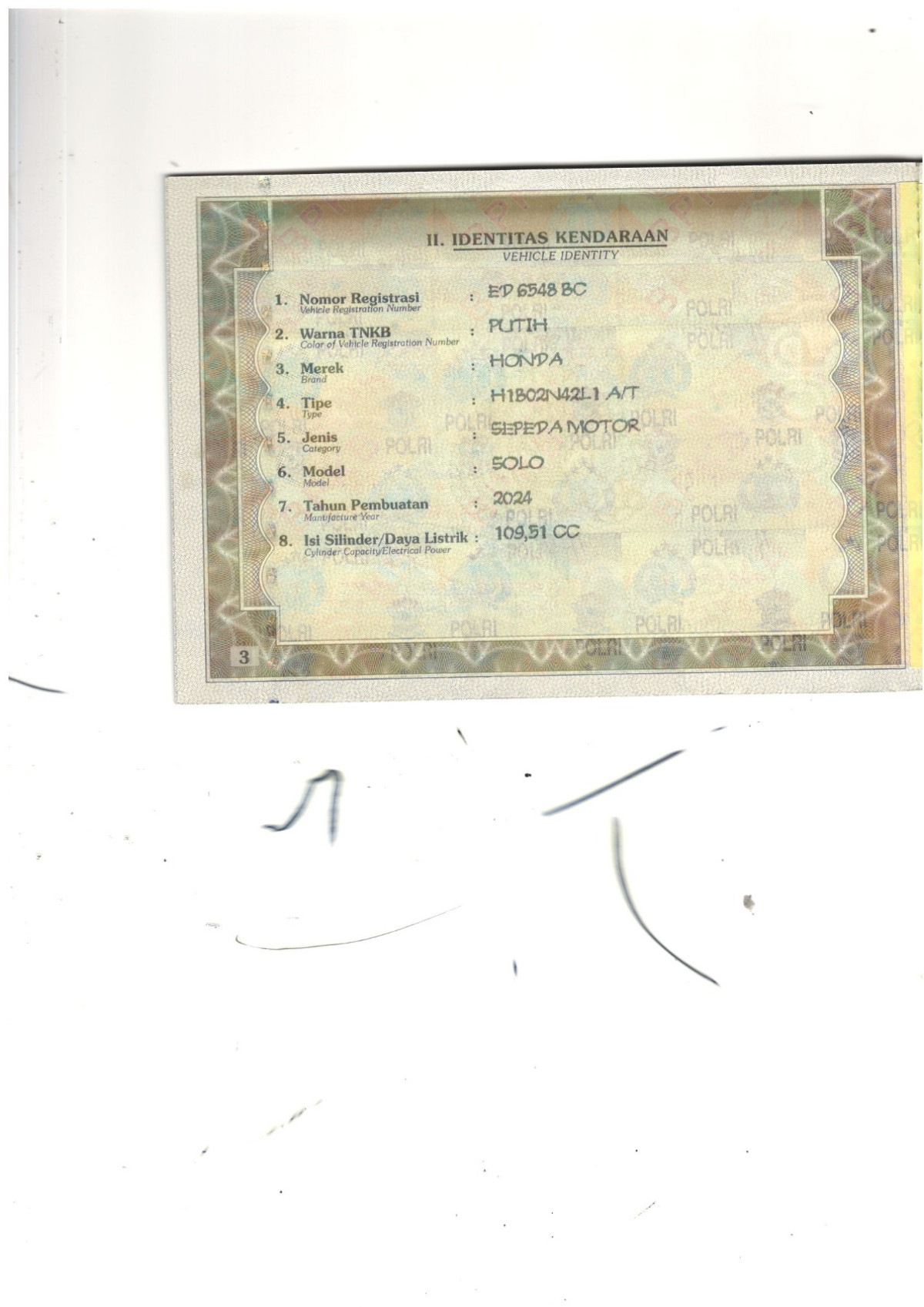 | No. Polisi | : | ED 6548 BC |