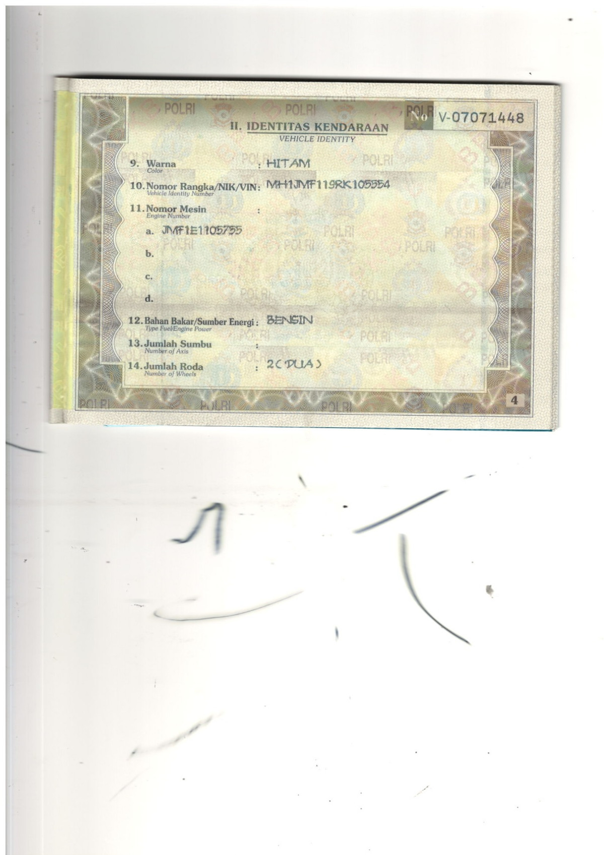 | No. Rangka | : | MH1JMF119RK105554 |