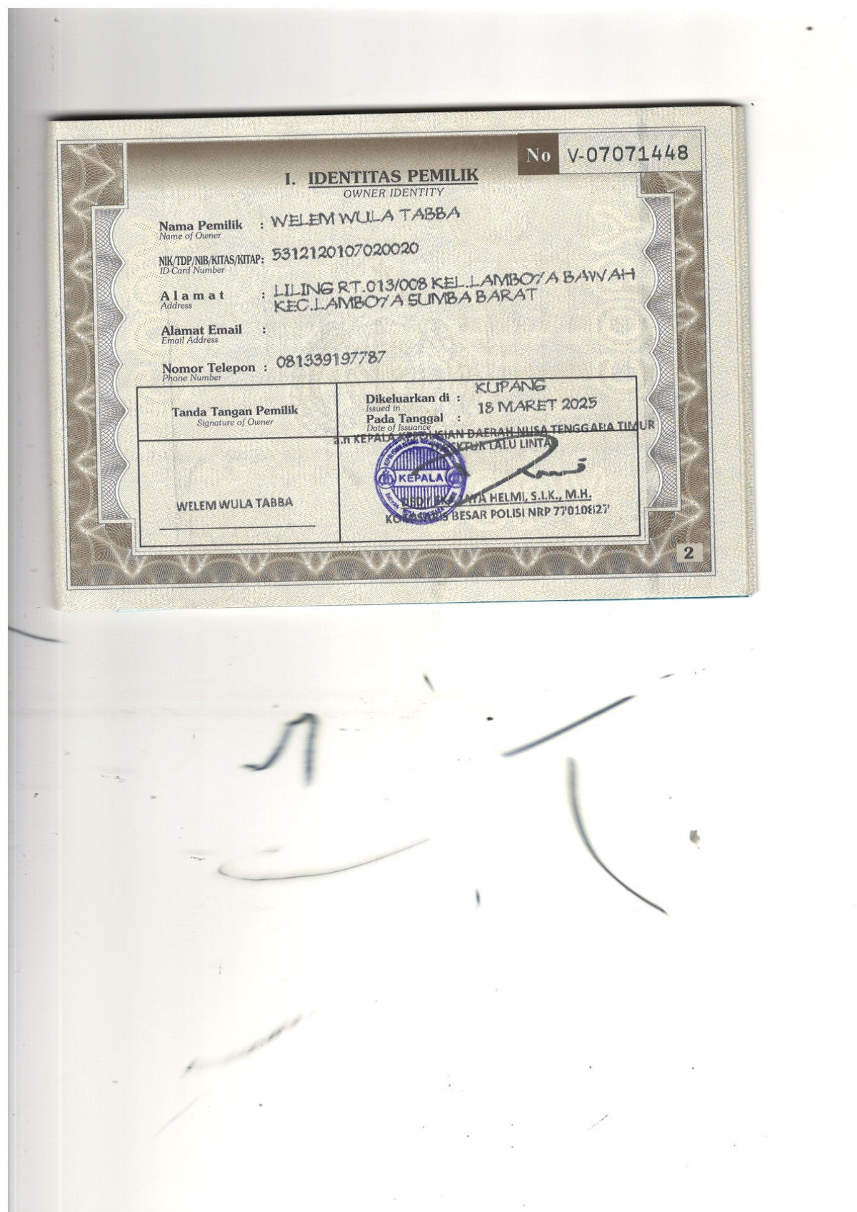 | KWT Blangko | : | Tidak Ada |