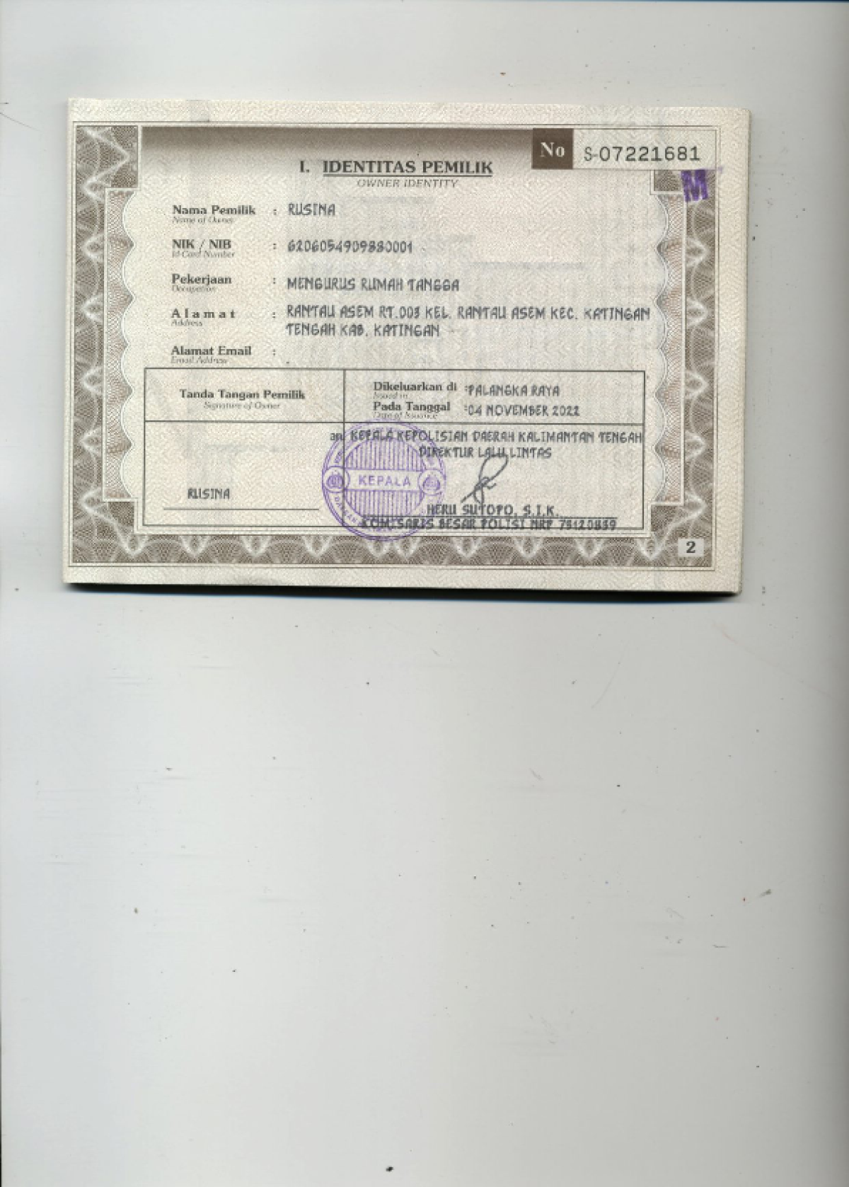 | No. Rangka | : | MHYANC22SNJ118674 |