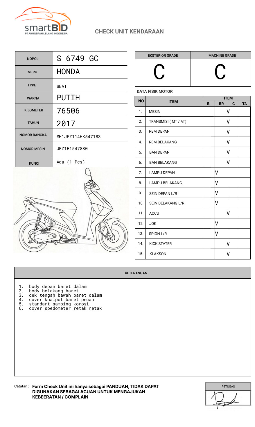 SEBELUM MELAKUKAN PENAWARAN UNIT PESERTA LELANG WAJIB MELAKUKAN PENGECEKAN UNIT DAN DOKUMEN TERLEBIH DAHULU // PIC AWAL +62 895-3231-57272 / ANDRI 085136886212 // UNIT DIKENAKAN BIAYA PPN 1.1% DARI HARGA TERBENTUK