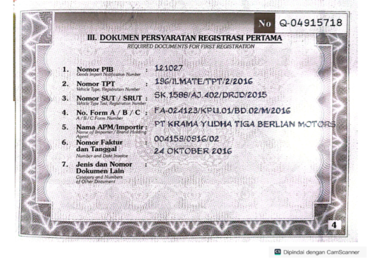 PEMENANG LELANG DIKENAKAN BIAYA PARKIR 500.000 // UNIT TIDAK DILAKUKAN PENGECEKAN OLEH TIM SMARTBID// SEBELUM MELAKUKAN PENAWARAN HARAP CEK KONDISI UNIT DAN DOKUMEN TERLEBIH DAHULU// WAJIB MENGHUBUNGI PIC DAN DATANG KE LOKASI UNTUK PENGECEKAN UNIT// UNIT DILELANG APA ADANYA PERMASALAHAN YANG TIMBUL DILUAR TANGGUNG JAWAB SMARTBID// PENGAMBILAN UNIT SLIDE H+2 DARI PELUNASAN // JIKA INGIN MENGAMBIL UNIT HARAP UNTUK KONFIRMASI DAHULU KE SMARTBID // JIKA YANG MENGAMBIL BIDDER HARAP MEMBAWA KTP ASLI // JIKA PENGAMBILAN DIWAKILKAN WAJIB MEMBAWA SURAT KUASA ASLI // UNIT DIKENAKAN BIAYA PPN 1,1% DARI HARGA TERBENTUK// PEMENANG LELANG DIKENAKAN BIAYA ROYA FIDUSIA 100.000 // HUBUNGI PIC DonnyP 085245381788 // FOTO NOKA NOSIN TA