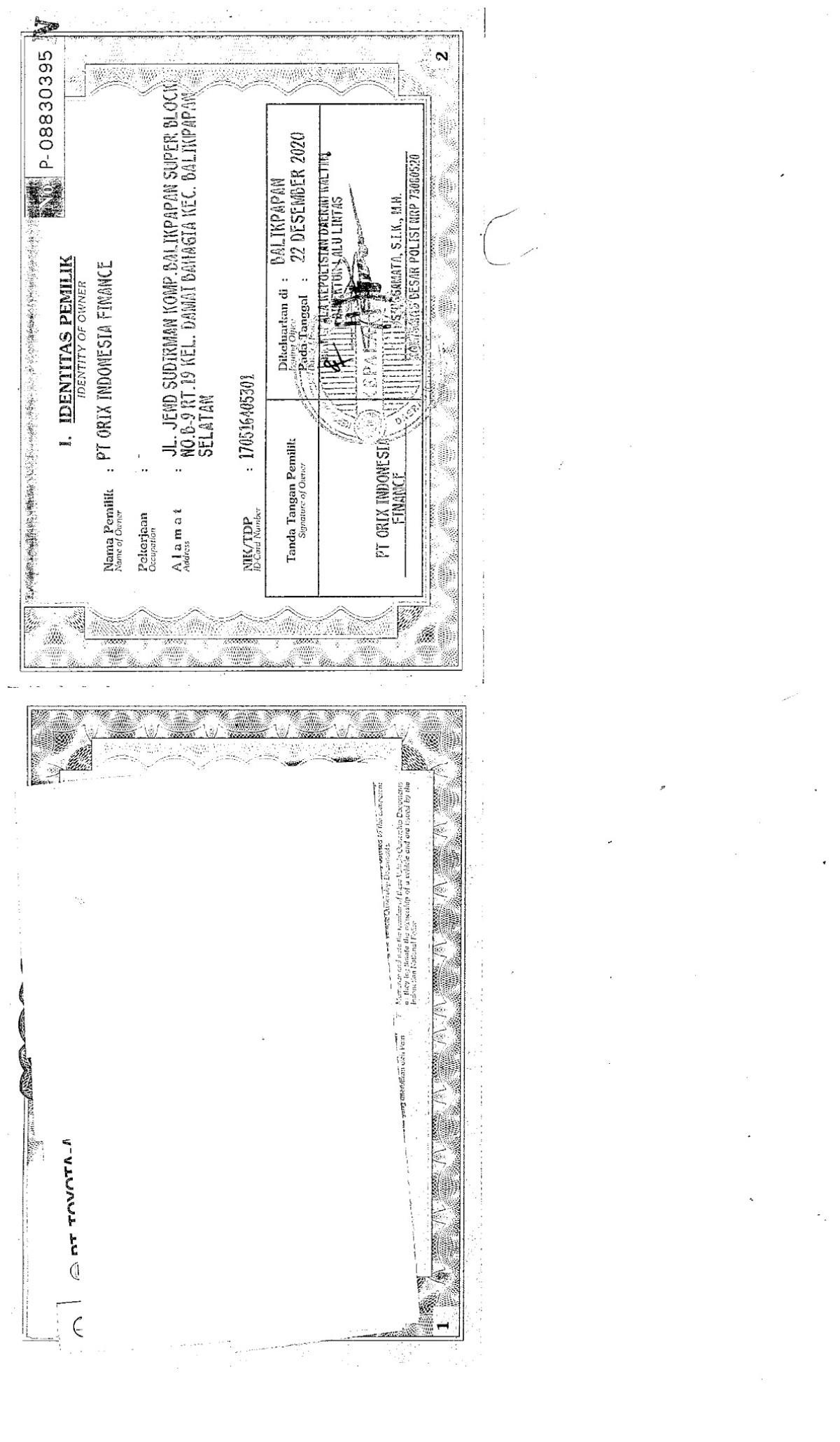 | No. Polisi | : | KT 1043 YC |