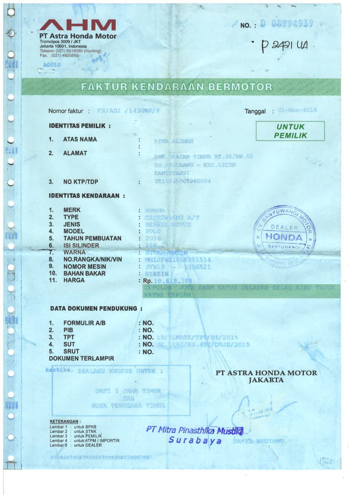 SEBELUM MELAKUKAN PENAWARAN UNIT PESERTA LELANG WAJIB MELAKUKAN PENGECEKAN UNIT DAN DOKUMEN TERLEBIH DAHULU // PIC JEMY : 0852-5833-5777 // INSPEKSI AGUNG : 0852-3671-4592 // UNIT DIKENAKAN BIAYA PPN 1.1% DARI HARGA TERBENTUK //