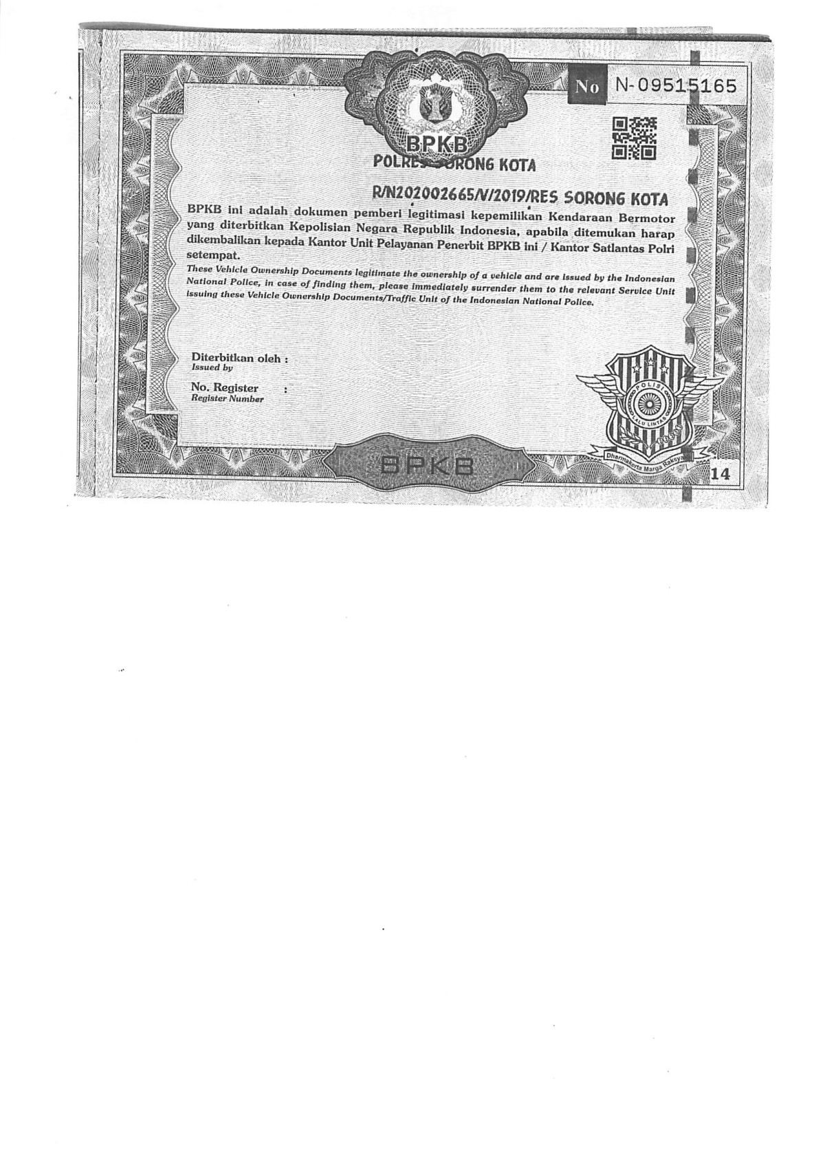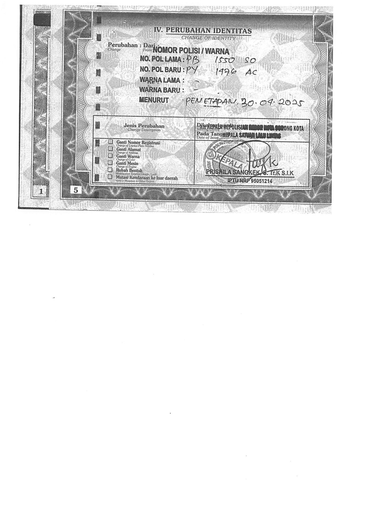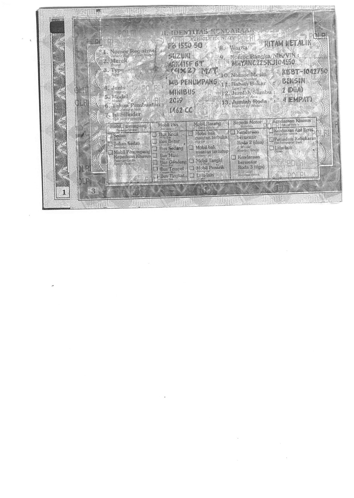 | No. Polisi | : | PY 1476 AC |