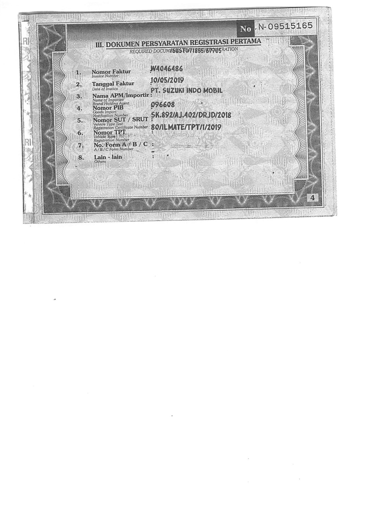 | KWT Blangko | : | Tidak Ada |