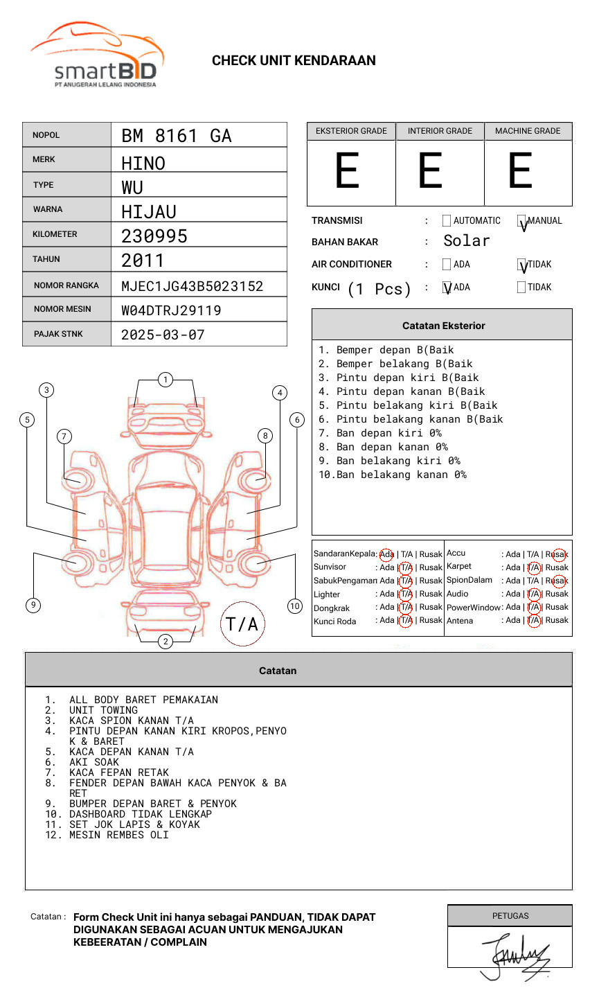 SEBELUM MELAKUKAN PENAWARAN HARAP CEK KONDISI UNIT SERTA DOKUMEN TERLEBIH DAHULU//UNIT DIKENAKAN BIAYA PPN 1,1% DARI HARGA TERBENTUK// JANBOY :+62 821-6954-4266 / JONNY : +62 813-7163-4690//SAMUEL : 0815 3681 7849