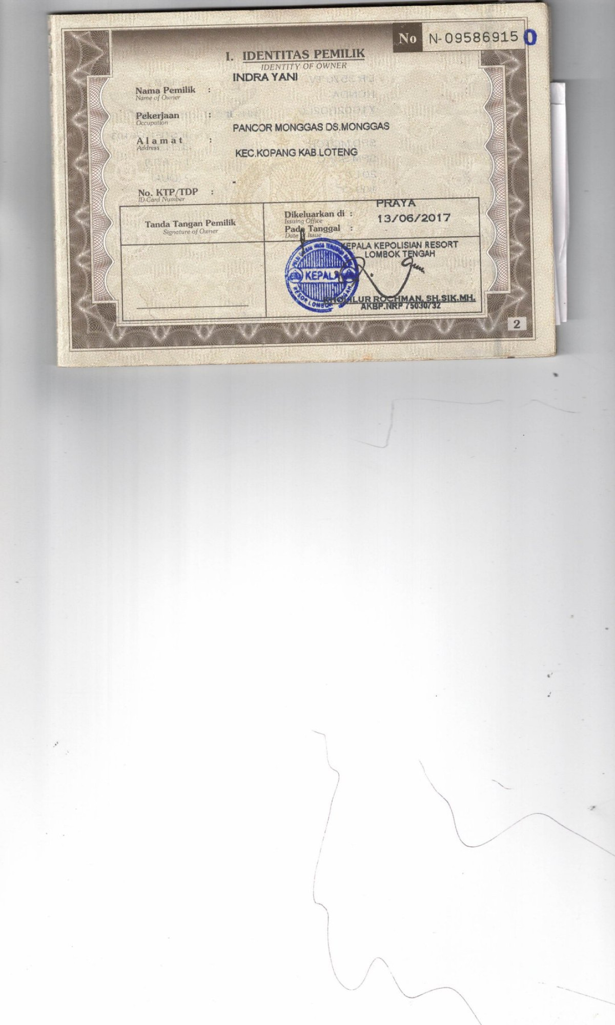 | FK. KTP | : | Tidak Ada |