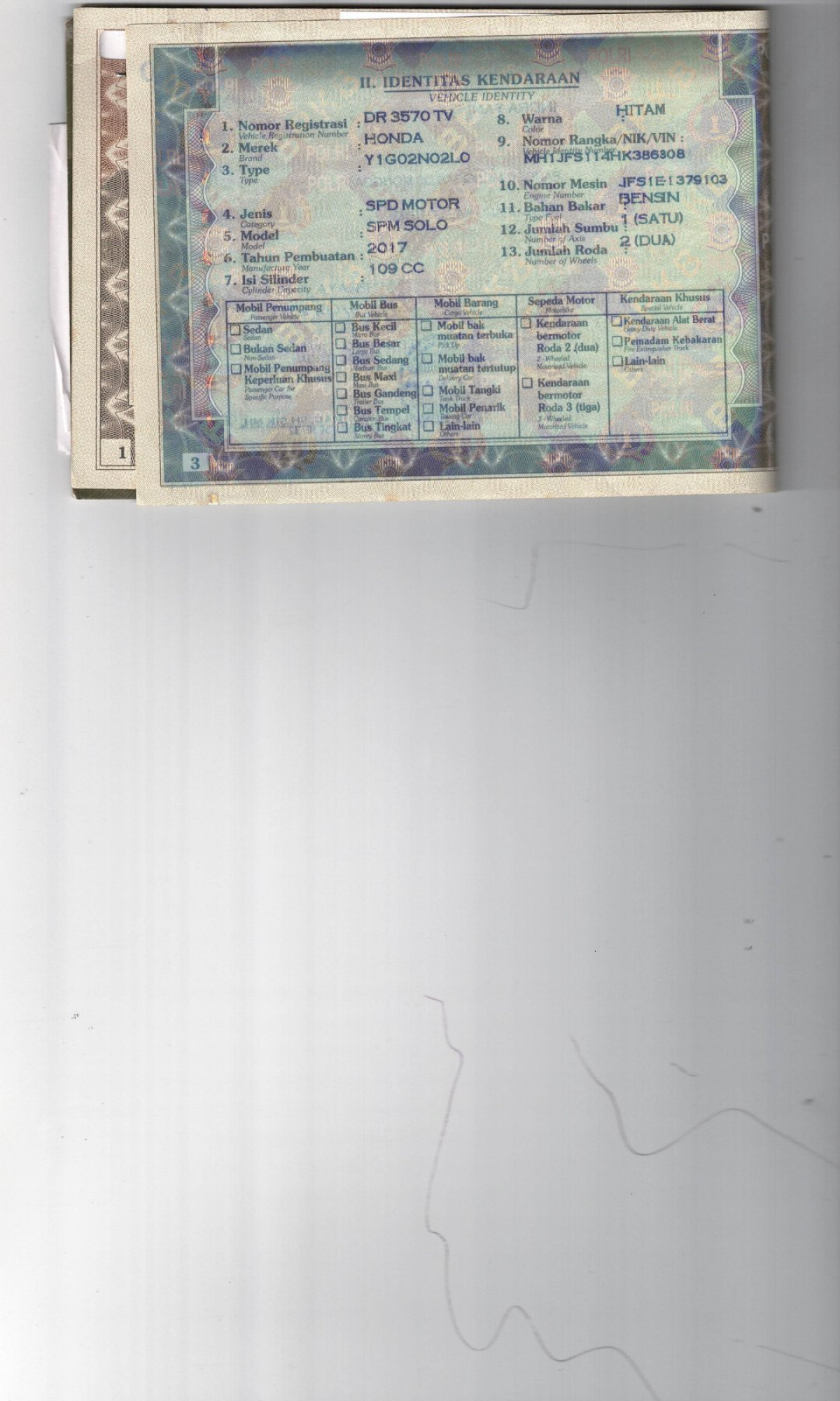 | No. Polisi | : | DR 3570 TV |