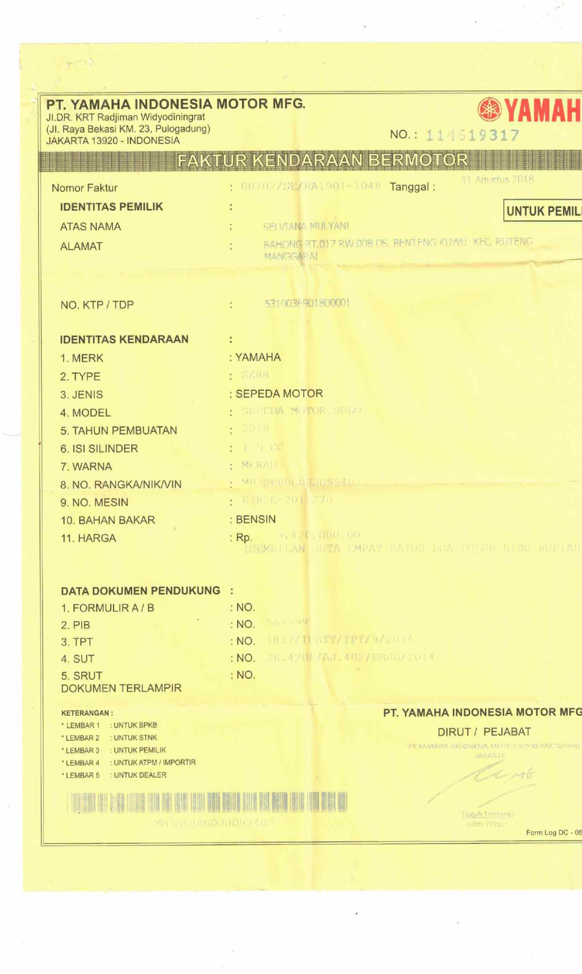 UNIT TIDAK DILAKUKAN PENGECEKAN OLEH TIM SMARTBID// SEBELUM MELAKUKAN PENAWARAN HARAP CEK KONDISI UNIT DAN DOKUMEN TERLEBIH DAHULU// WAJIB MENGHUBUNGI PIC DAN DATANG KE LOKASI UNTUK PENGECEKAN UNIT// UNIT DILELANG APA ADANYA PERMASALAHAN YANG TIMBUL DILUAR TANGGUNG JAWAB SMARTBID// JIKA INGIN MENGAMBIL UNIT HARAP UNTUK KONFIRMASI DAHULU KE SMARTBID // JIKA YANG MENGAMBIL BIDDER HARAP MEMBAWA KTP ASLI