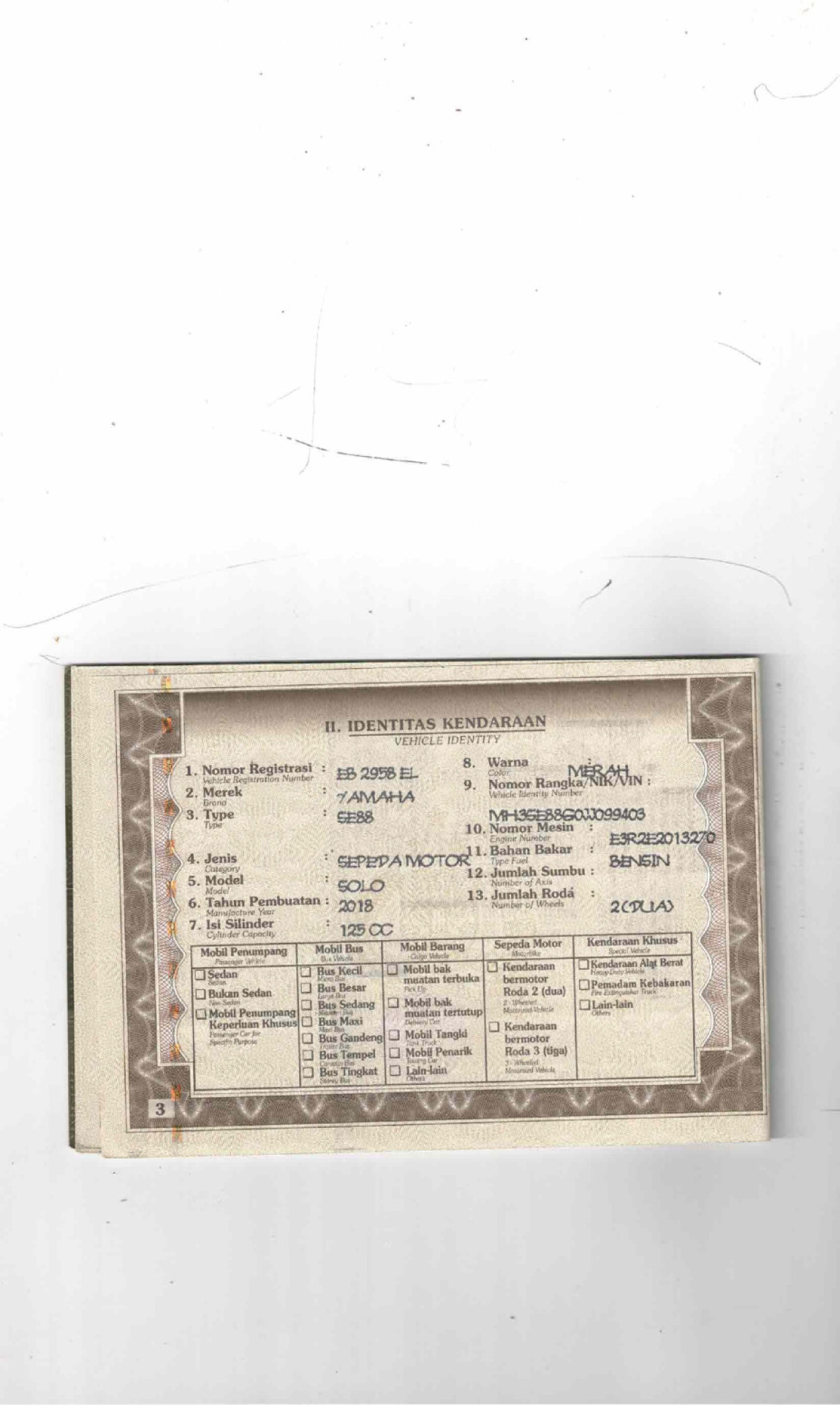 | No. Rangka | : | MH3SE88G0JJ099403 |