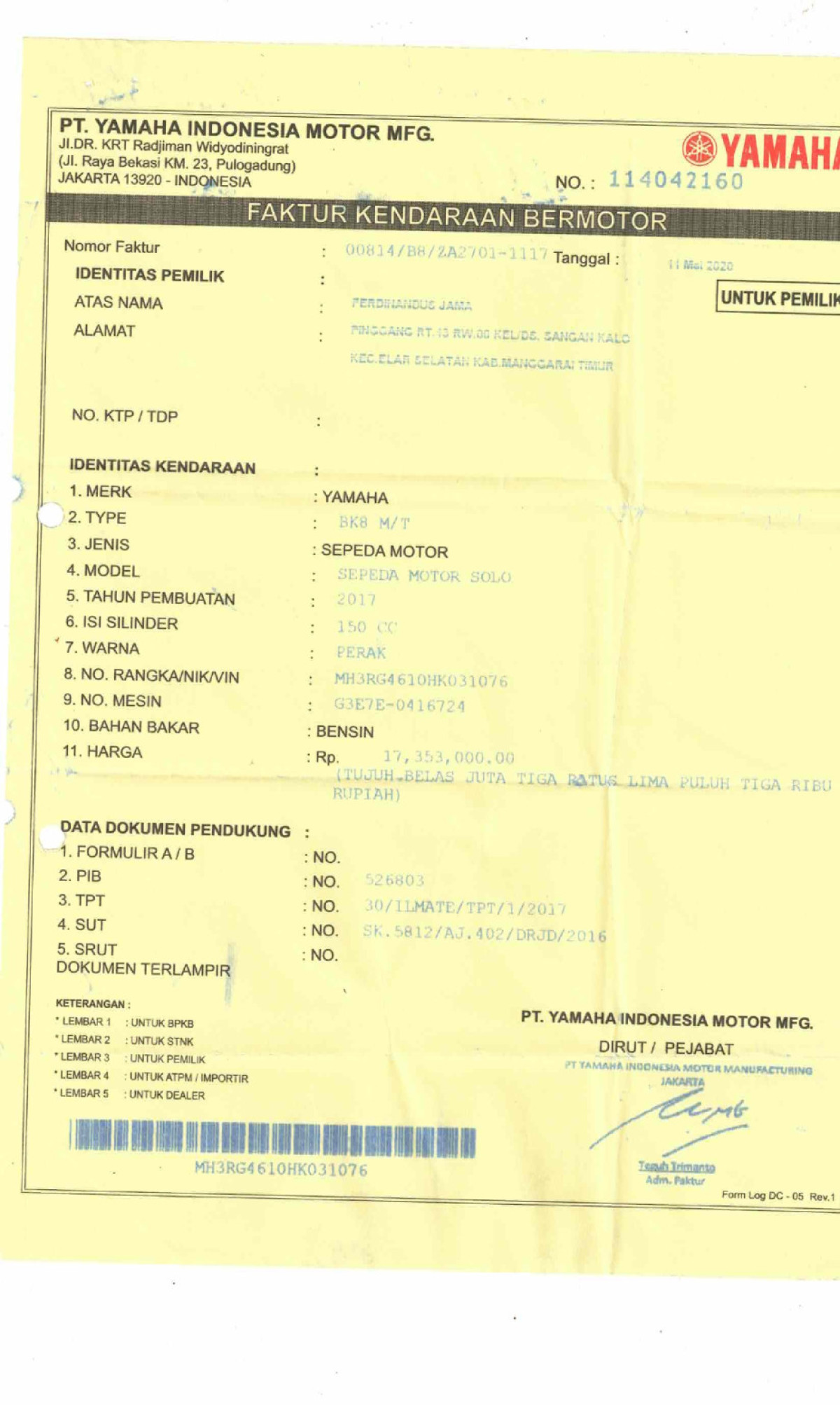 UNIT TIDAK DILAKUKAN PENGECEKAN OLEH TIM SMARTBID// SEBELUM MELAKUKAN PENAWARAN HARAP CEK KONDISI UNIT DAN DOKUMEN TERLEBIH DAHULU// WAJIB MENGHUBUNGI PIC DAN DATANG KE LOKASI UNTUK PENGECEKAN UNIT// UNIT DILELANG APA ADANYA PERMASALAHAN YANG TIMBUL DILUAR TANGGUNG JAWAB SMARTBID// JIKA INGIN MENGAMBIL UNIT HARAP UNTUK KONFIRMASI DAHULU KE SMARTBID // JIKA YANG MENGAMBIL BIDDER HARAP MEMBAWA KTP ASLI//NOPOL FISIK TA