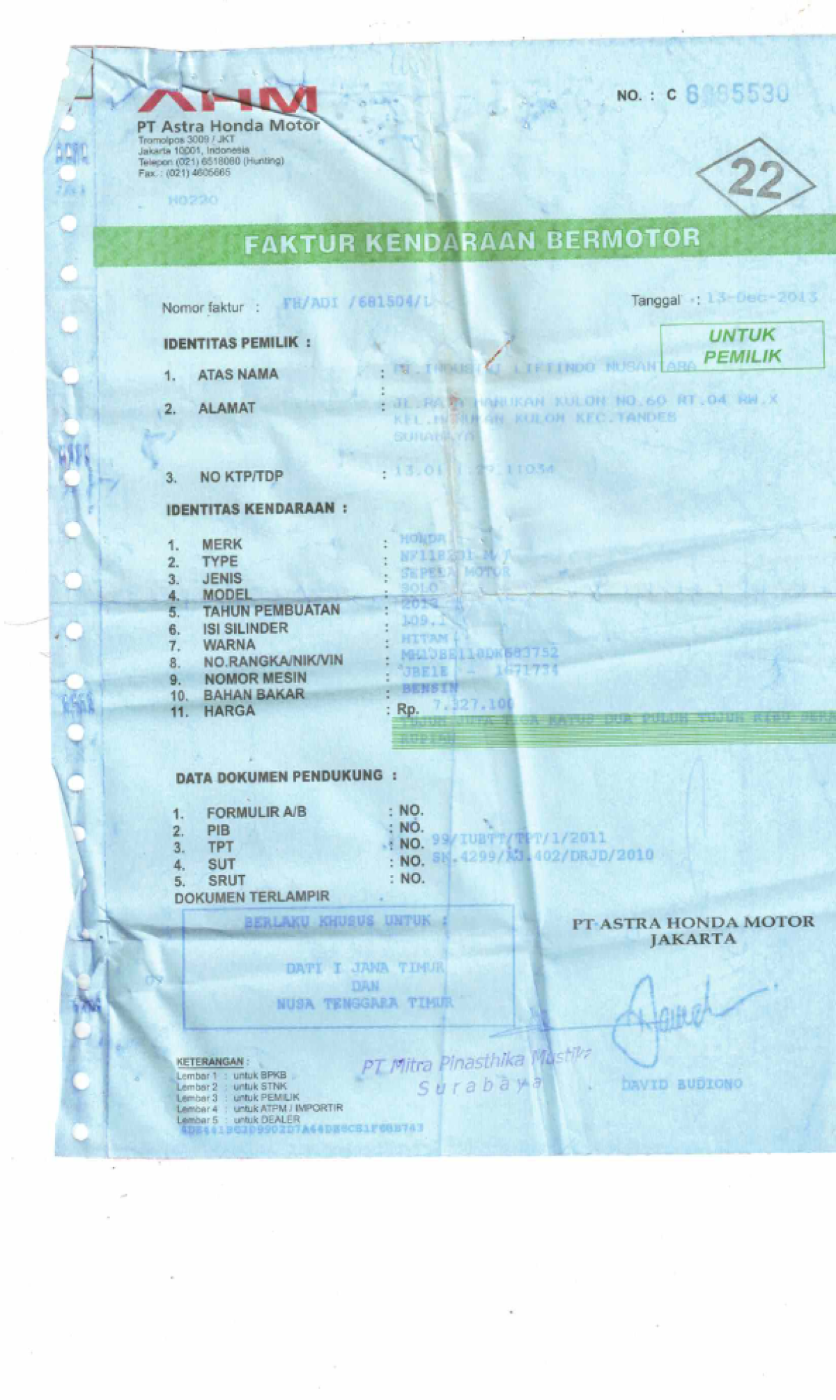 UNIT TIDAK DILAKUKAN PENGECEKAN OLEH TIM SMARTBID// SEBELUM MELAKUKAN PENAWARAN HARAP CEK KONDISI UNIT DAN DOKUMEN TERLEBIH DAHULU// WAJIB MENGHUBUNGI PIC DAN DATANG KE LOKASI UNTUK PENGECEKAN UNIT// UNIT DILELANG APA ADANYA PERMASALAHAN YANG TIMBUL DILUAR TANGGUNG JAWAB SMARTBID// JIKA INGIN MENGAMBIL UNIT HARAP UNTUK KONFIRMASI DAHULU KE SMARTBID // JIKA YANG MENGAMBIL BIDDER HARAP MEMBAWA KTP ASLI // NOPOL FISIK TA