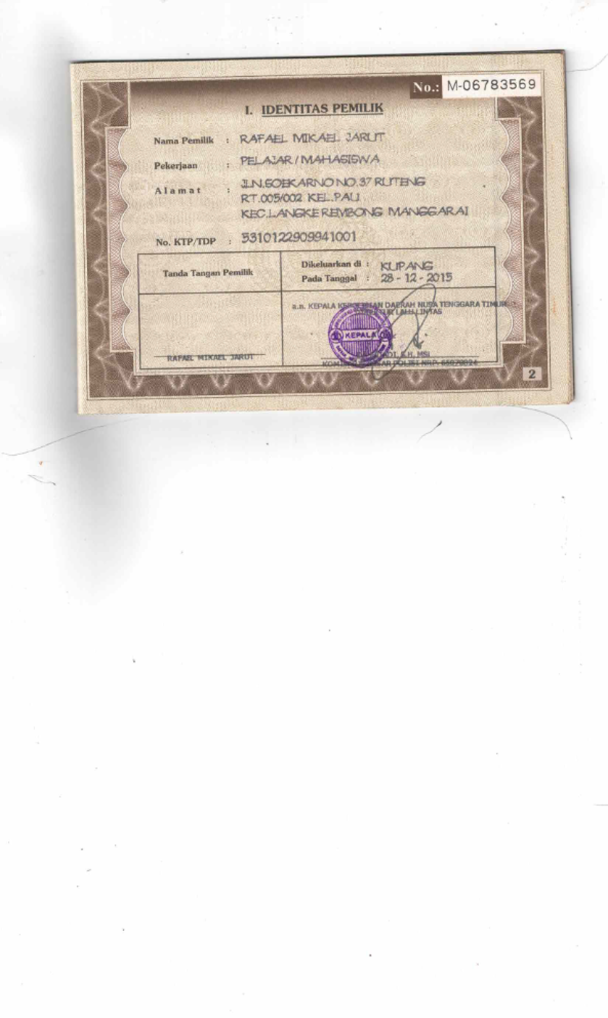 | FK. KTP | : | Tidak Ada |