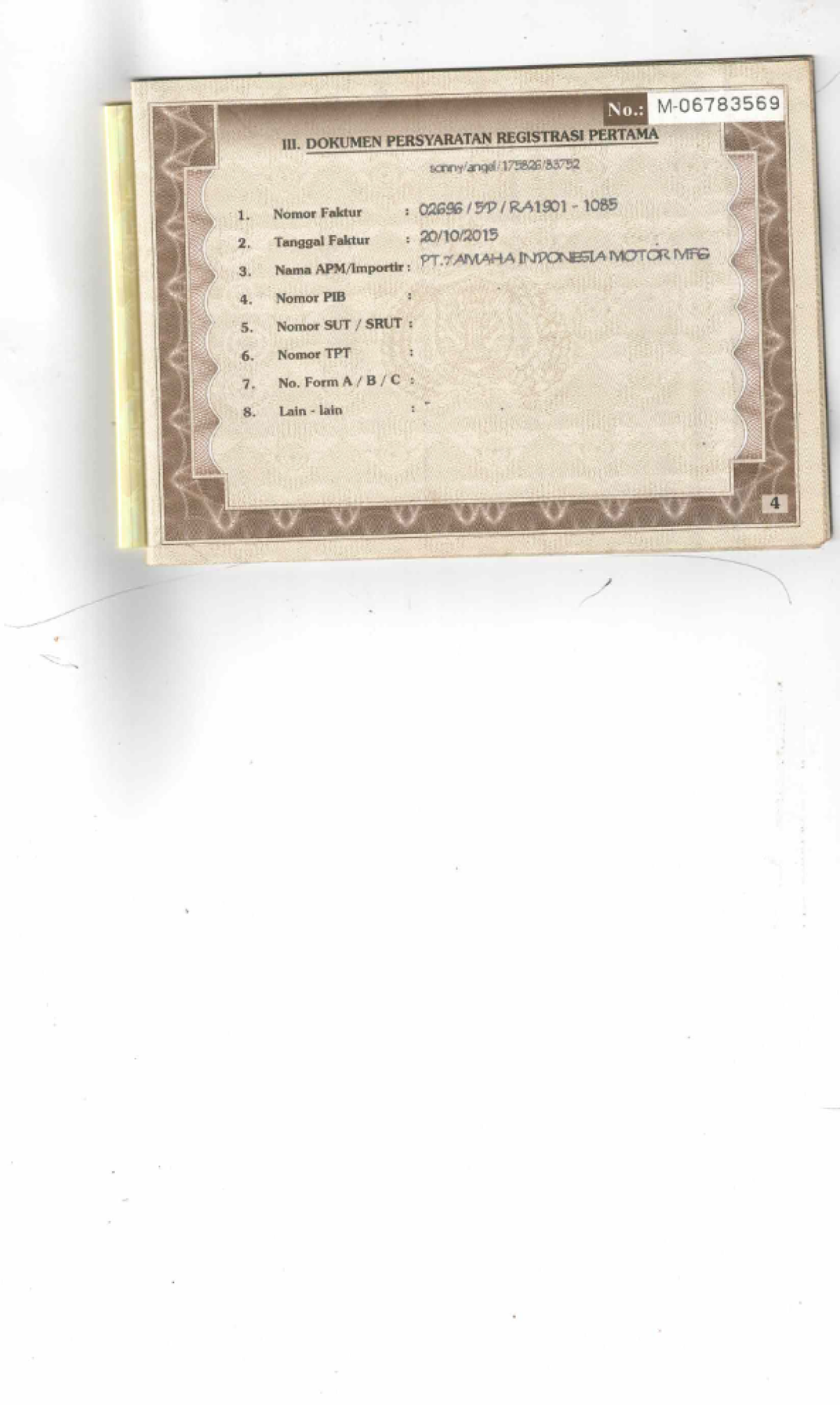 | KWT Blangko | : | Tidak Ada |