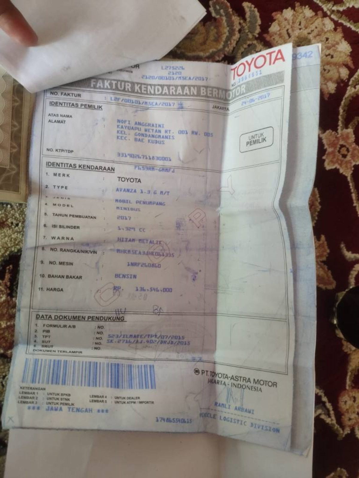 | No. Rangka | : | MHKM5EA3JHK061335 |