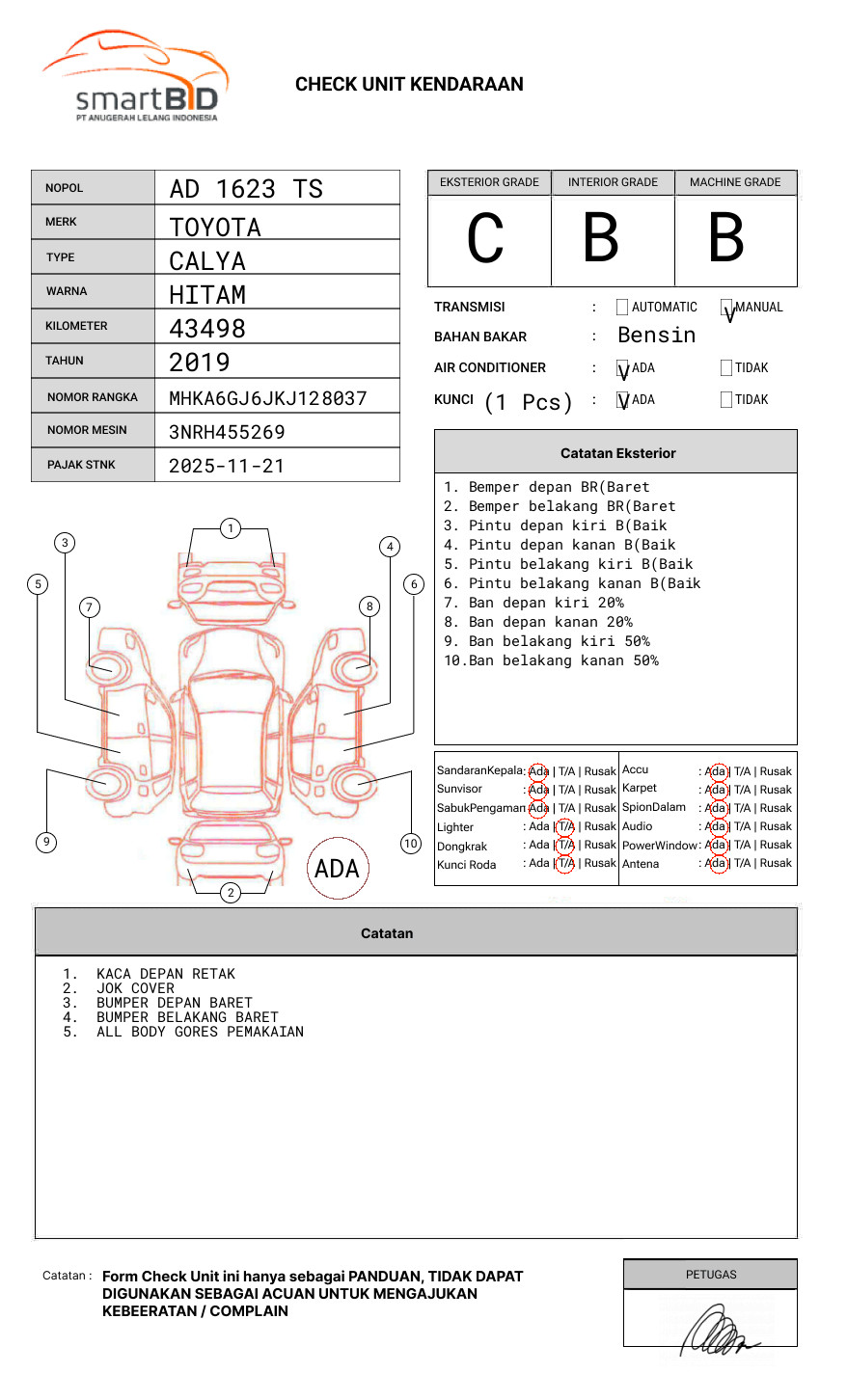 SEBELUM MELAKUKAN PENAWARAN UNIT PESERTA LELANG WAJIB MELAKUKAN PENGECEKAN UNIT DAN DOKUMEN TERLEBIH DAHULU // PIC TIAN : +62 896-6265-5959 // UNIT DIKENAKAN BIAYA PPN 1.1% DARI HARGA TERBENTUK //