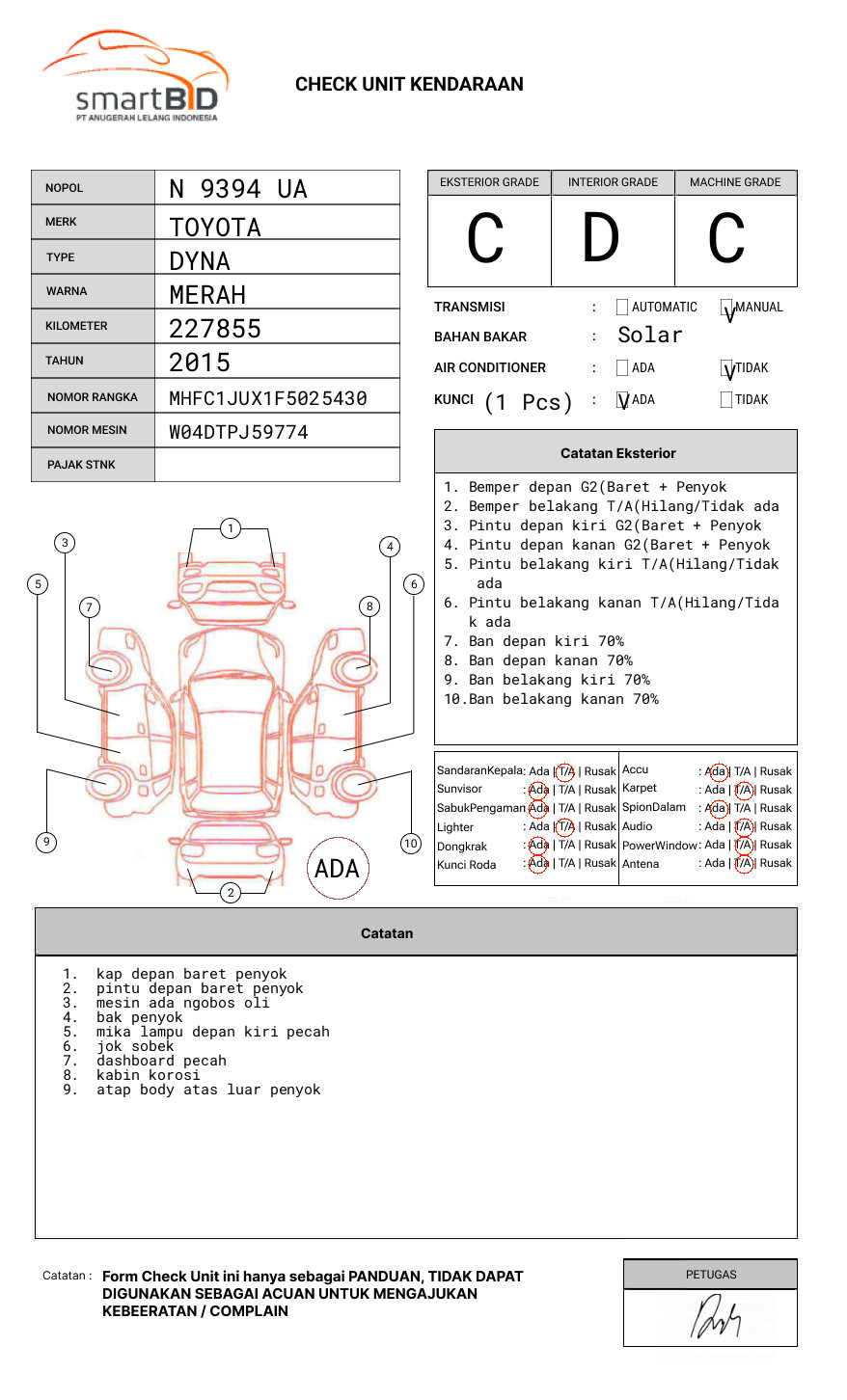 HANYA KEUR// SEBELUM MELAKUKAN PENAWARAN UNIT PESERTA LELANG WAJIB MELAKUKAN PENGECEKAN UNIT DAN DOKUMEN TERLEBIH DAHULU // PIC AWAL +62 895-3231-57272 / ANDRI 085136886212 // UNIT DIKENAKAN BIAYA PPN 1.1% DARI HARGA TERBENTUK