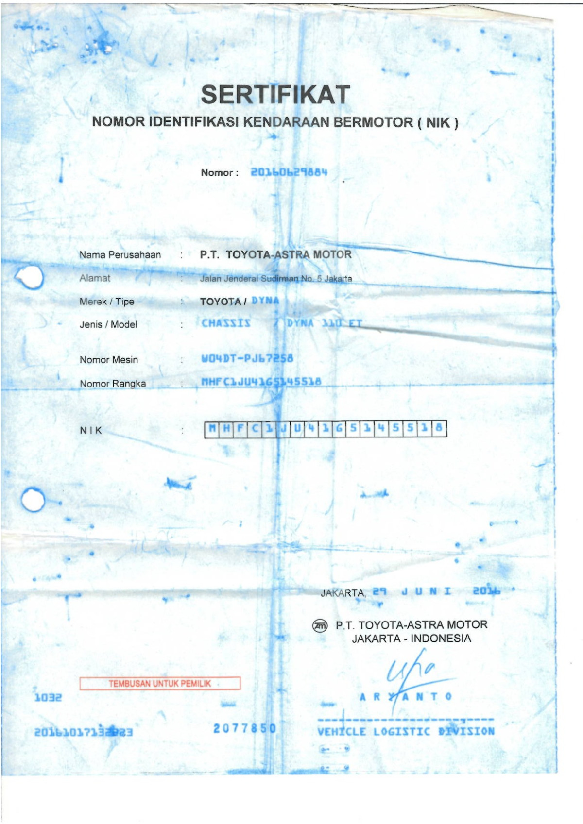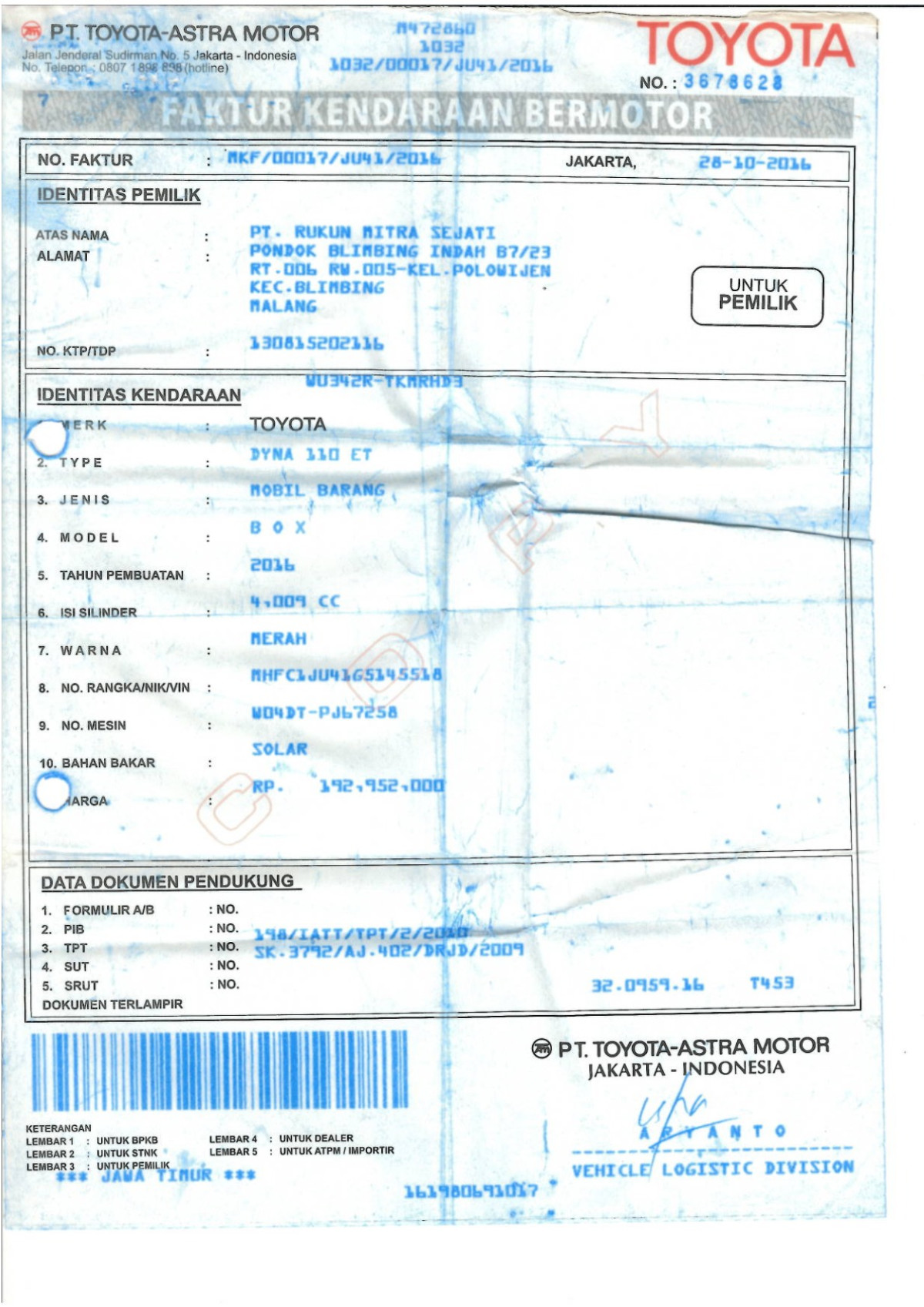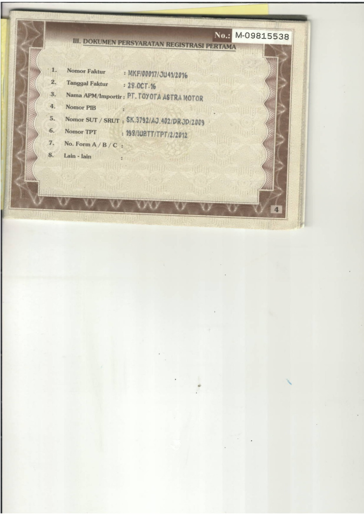 | KWT Blangko | : | Tidak Ada |