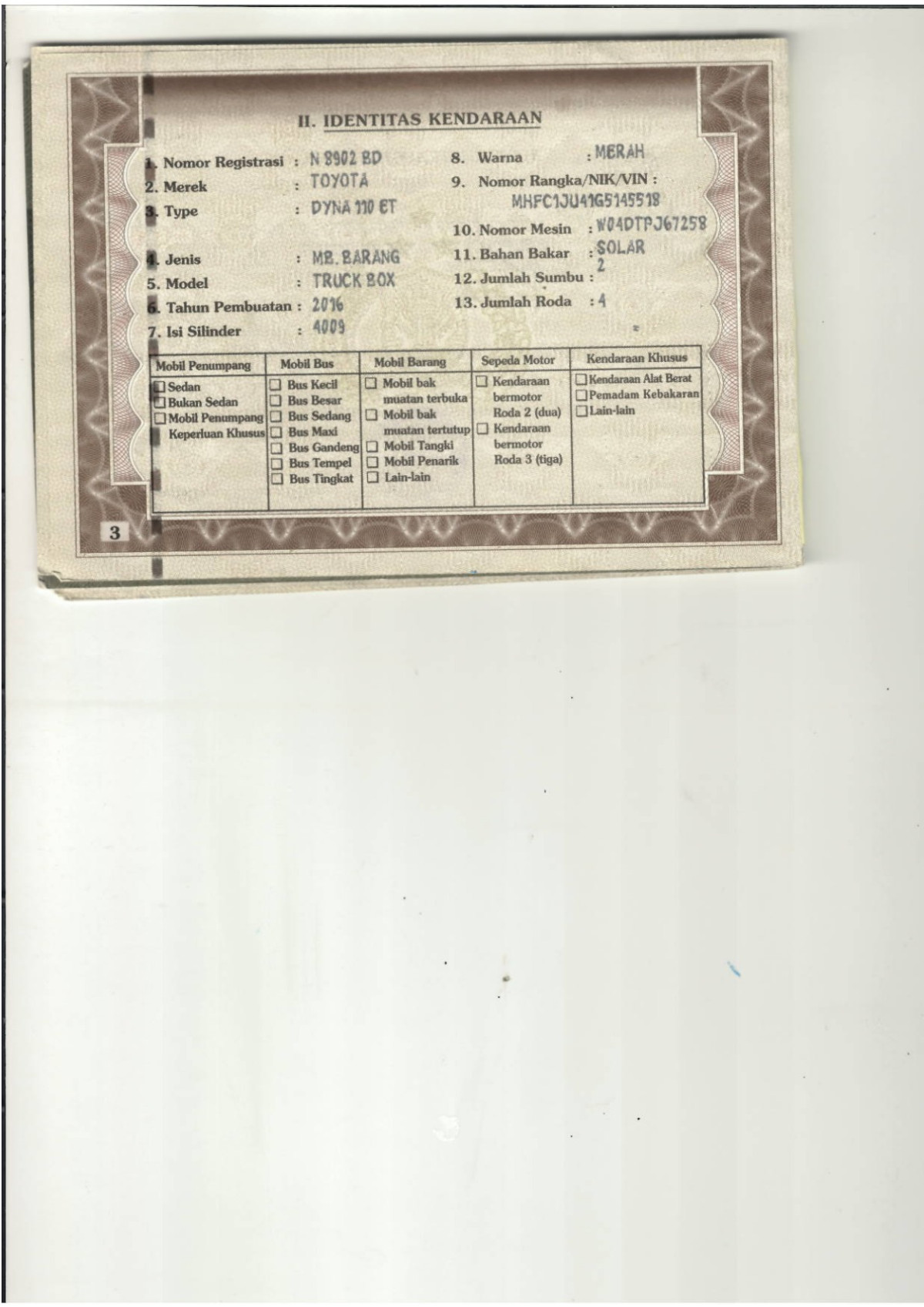 | No. Polisi | : | N 8902 BD |