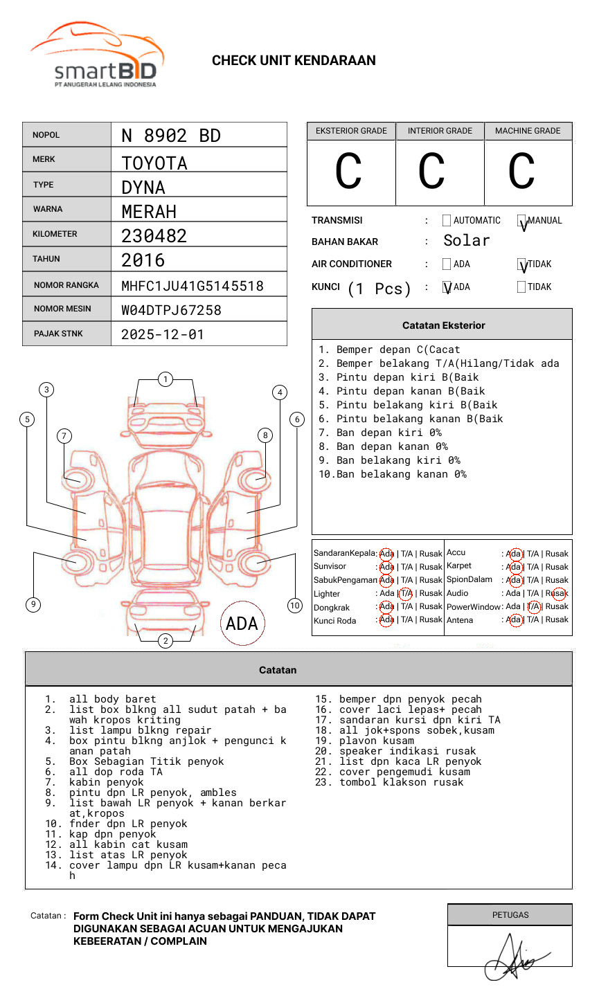 SEBELUM MELAKUKAN PENAWARAN HARAP CEK KONDISI UNIT SERTA DOKUMEN TERLEBIH DAHULU// UNIT DIKENAKAN BIAYA PPN 1,1% DARI HARGA TERBENTUK// PIC TOYIB : 081332024730