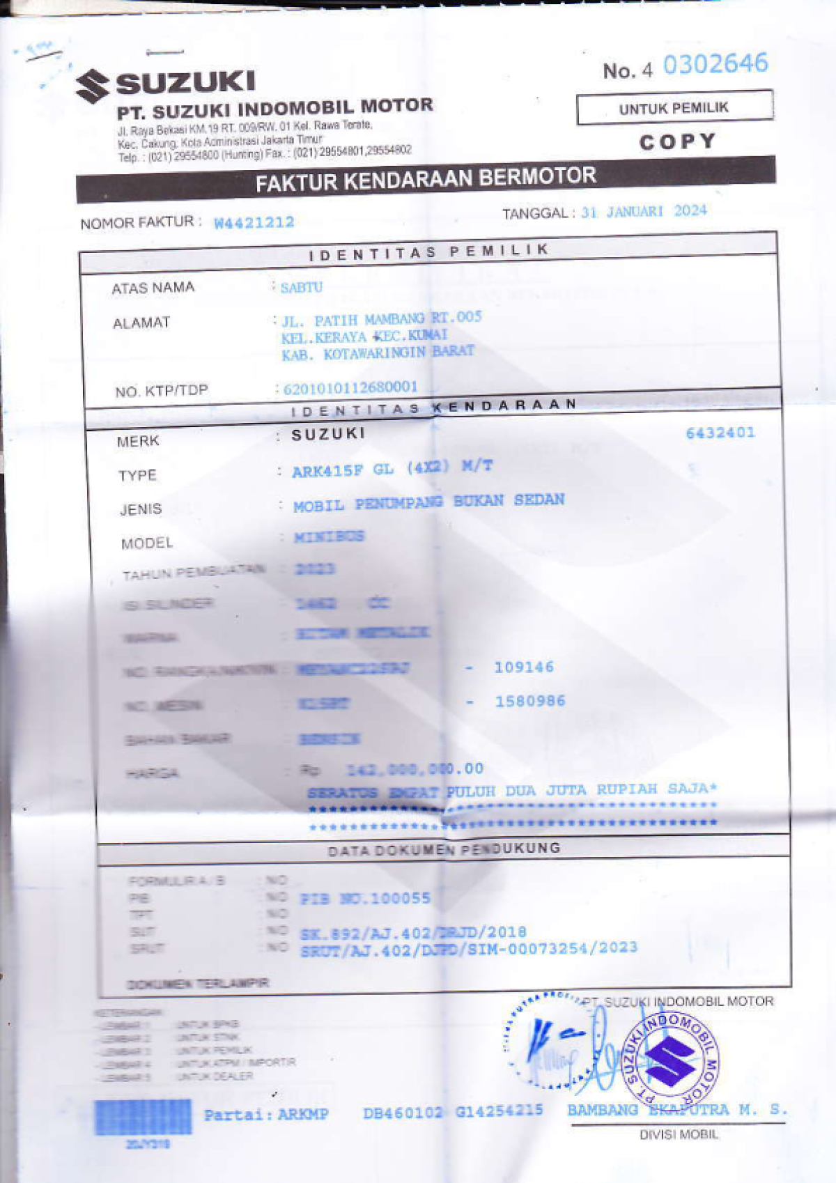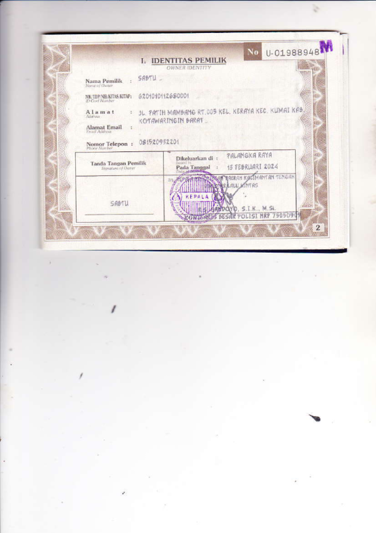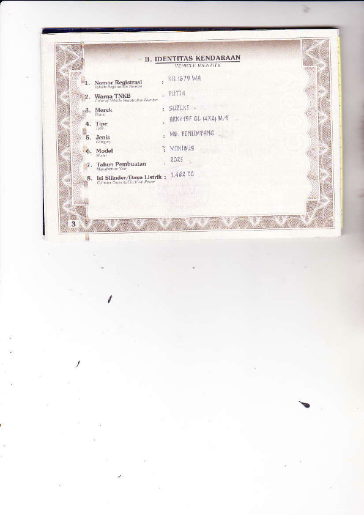 | No. Polisi | : | KH 1679 WA |